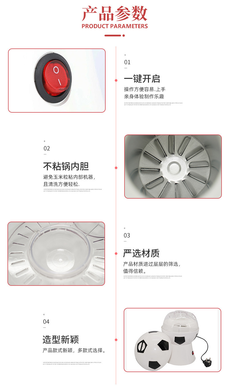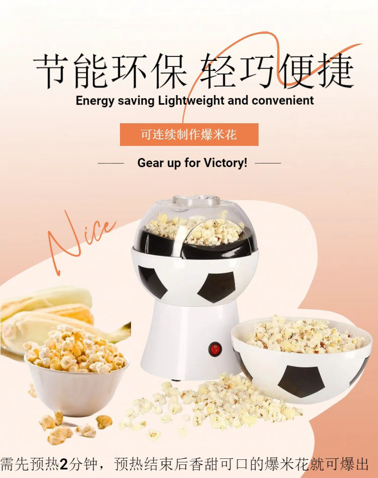 美规小型电动足球爆米花机 家用迷你儿童食品膨化机世界杯爆谷机