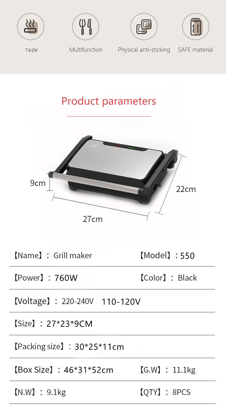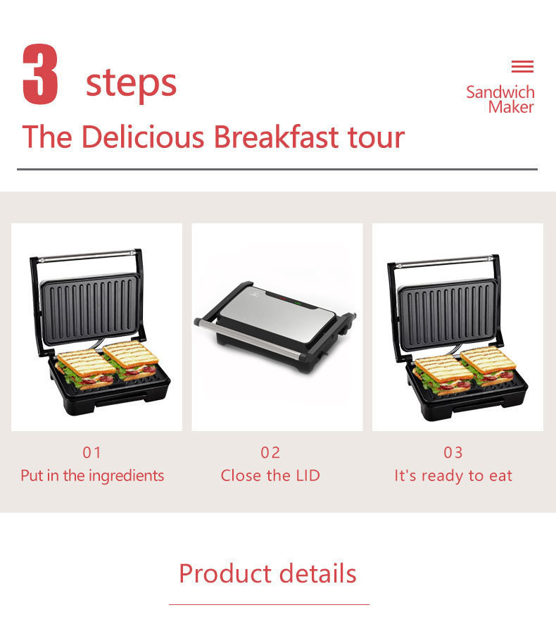 中性无牌牛排机煎烤机帕尼尼早餐机 180度摊平早餐机压三明治机
