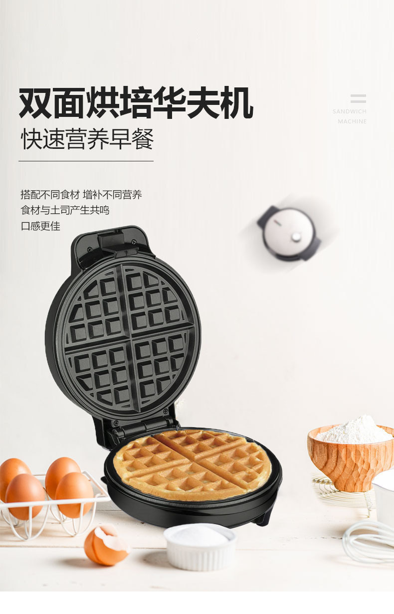 美规家用华夫机 可控温双面烘焙蛋糕机点心面包机早餐机电饼铛