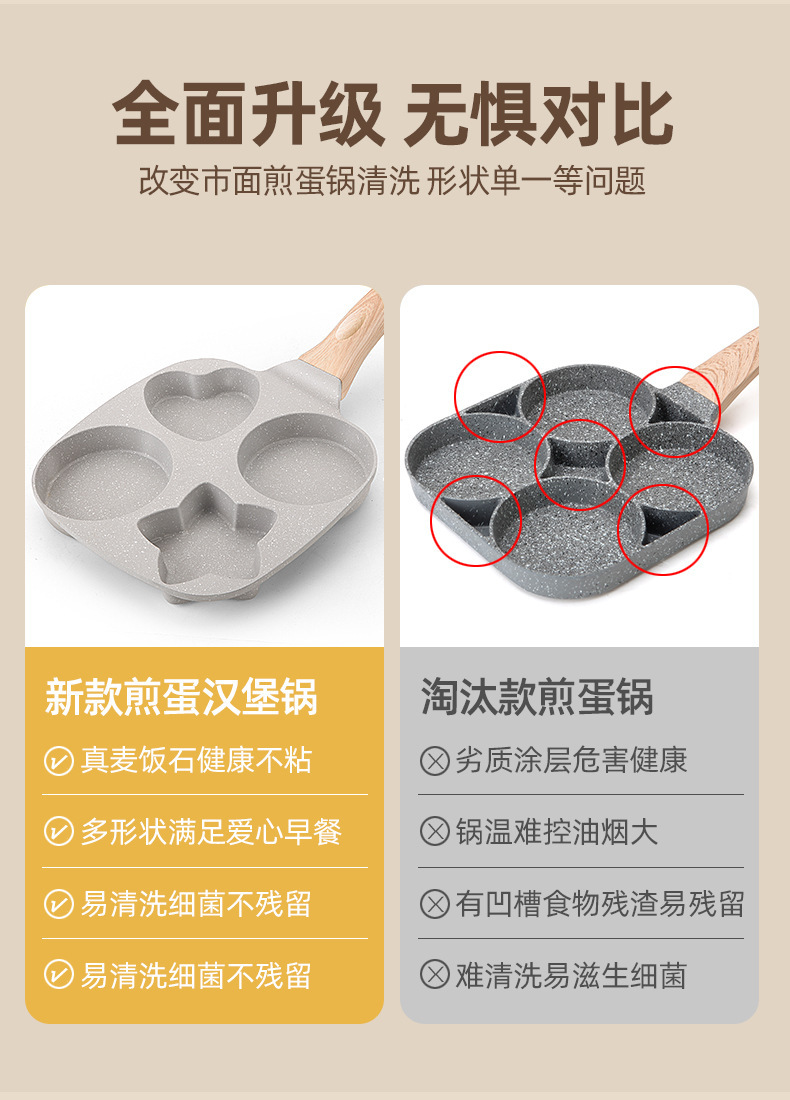 跨境热销麦饭石不沾煎蛋锅汉堡锅 煎饼煎牛排迷你平底锅蛋堡模具