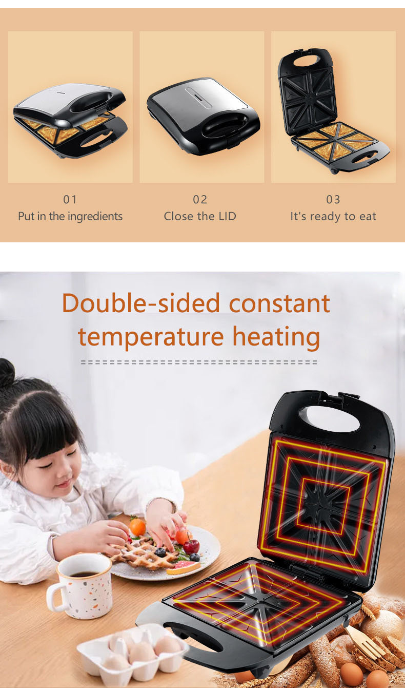 跨境大号四片三明治机 双面加热面包轻食机烙饼煎烤机早餐电饼铛