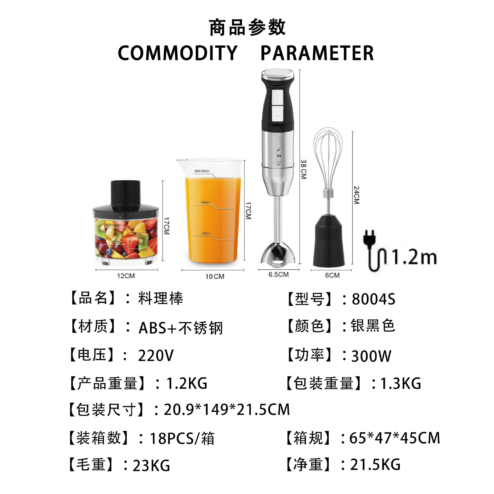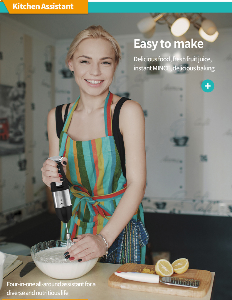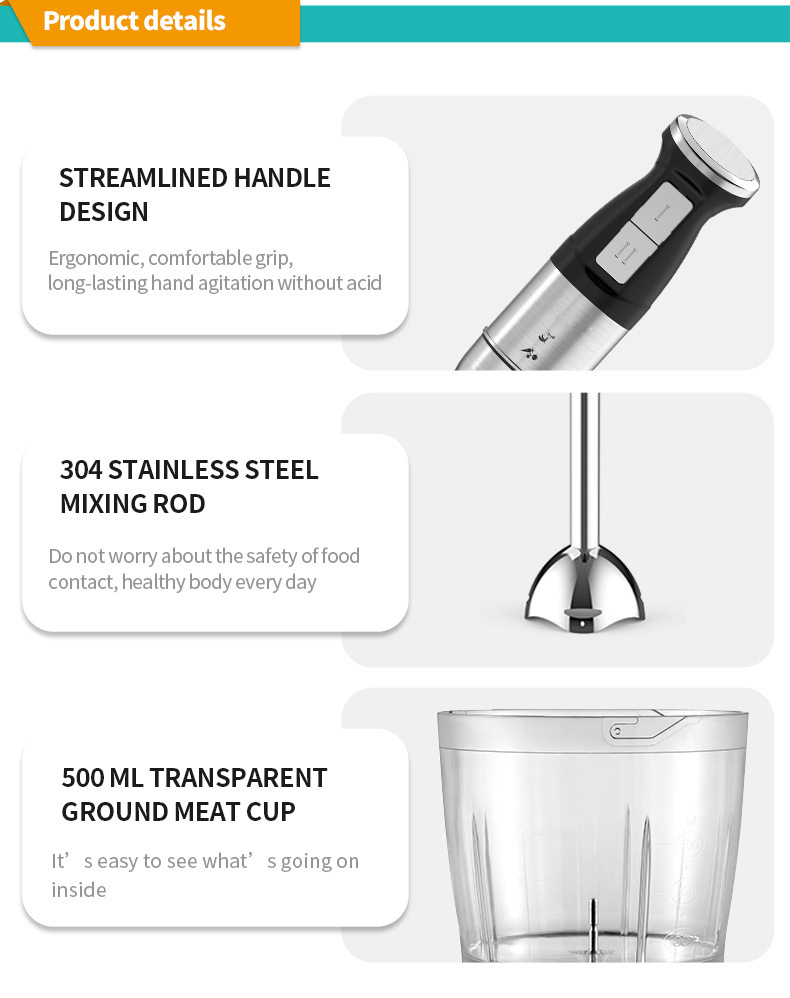 新款家用手持电动多功能料理棒搅拌机棒 四合一不锈钢榨汁搅拌机