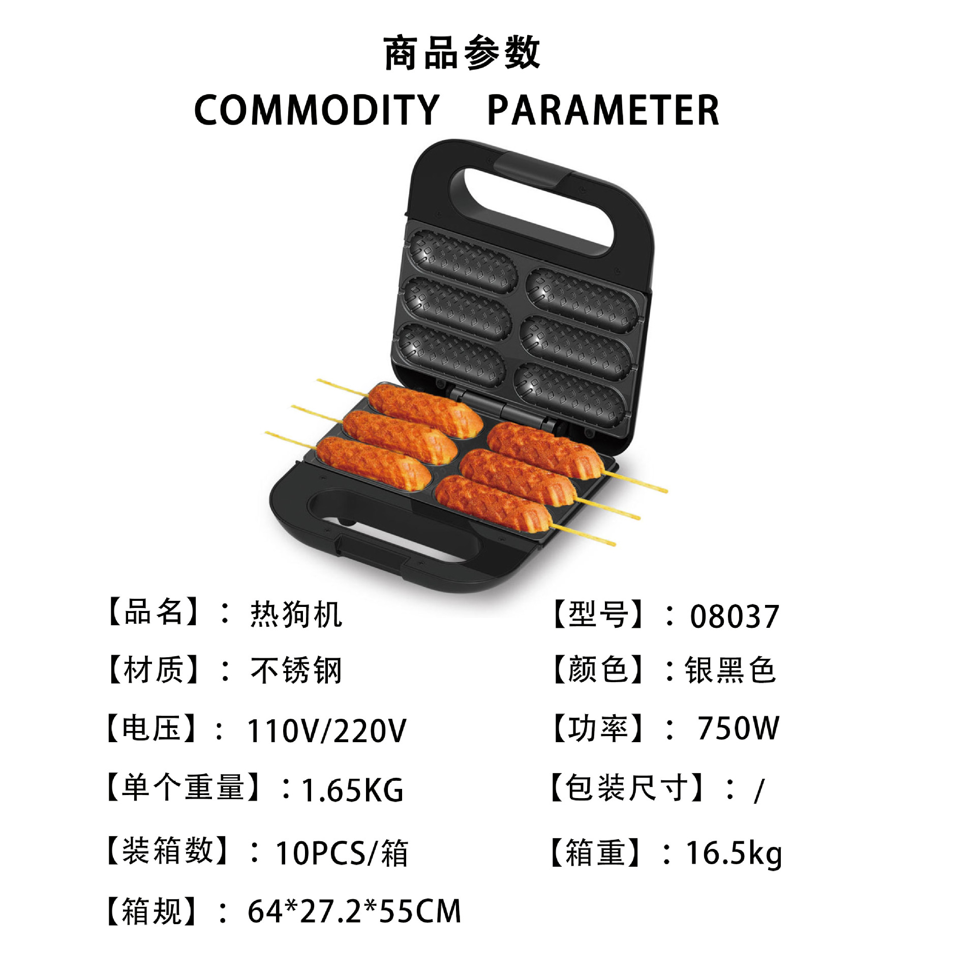 跨境美规热狗机 早餐机淀粉烤肠机香肠机烤火腿肠机电饼铛煎烤机