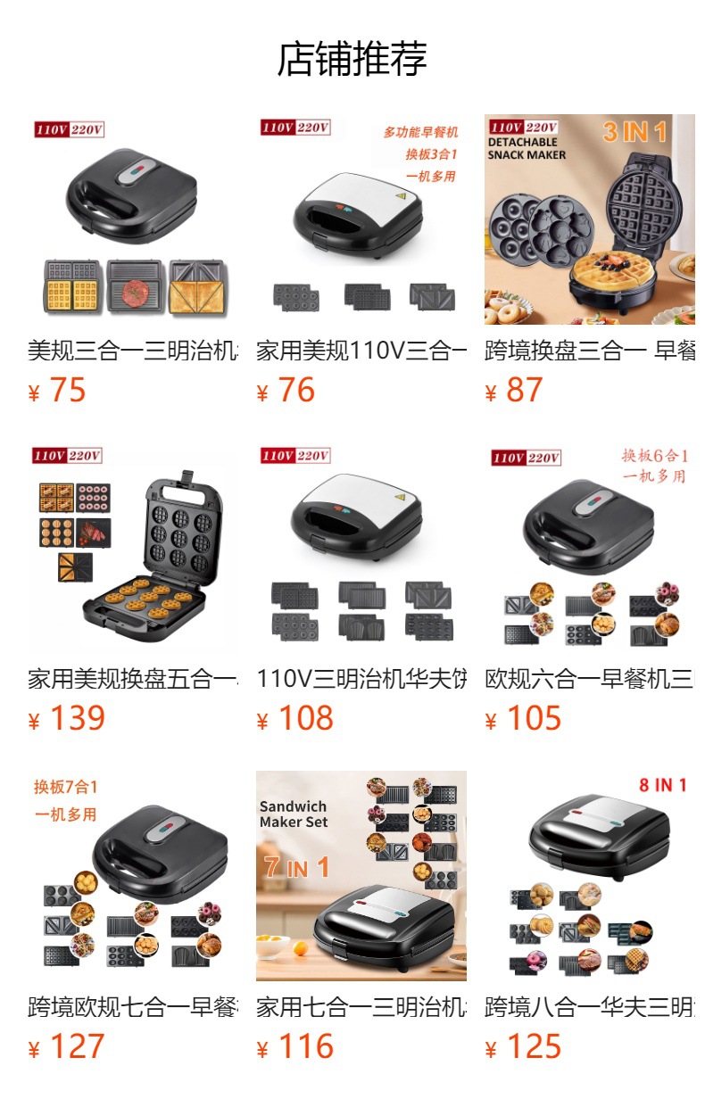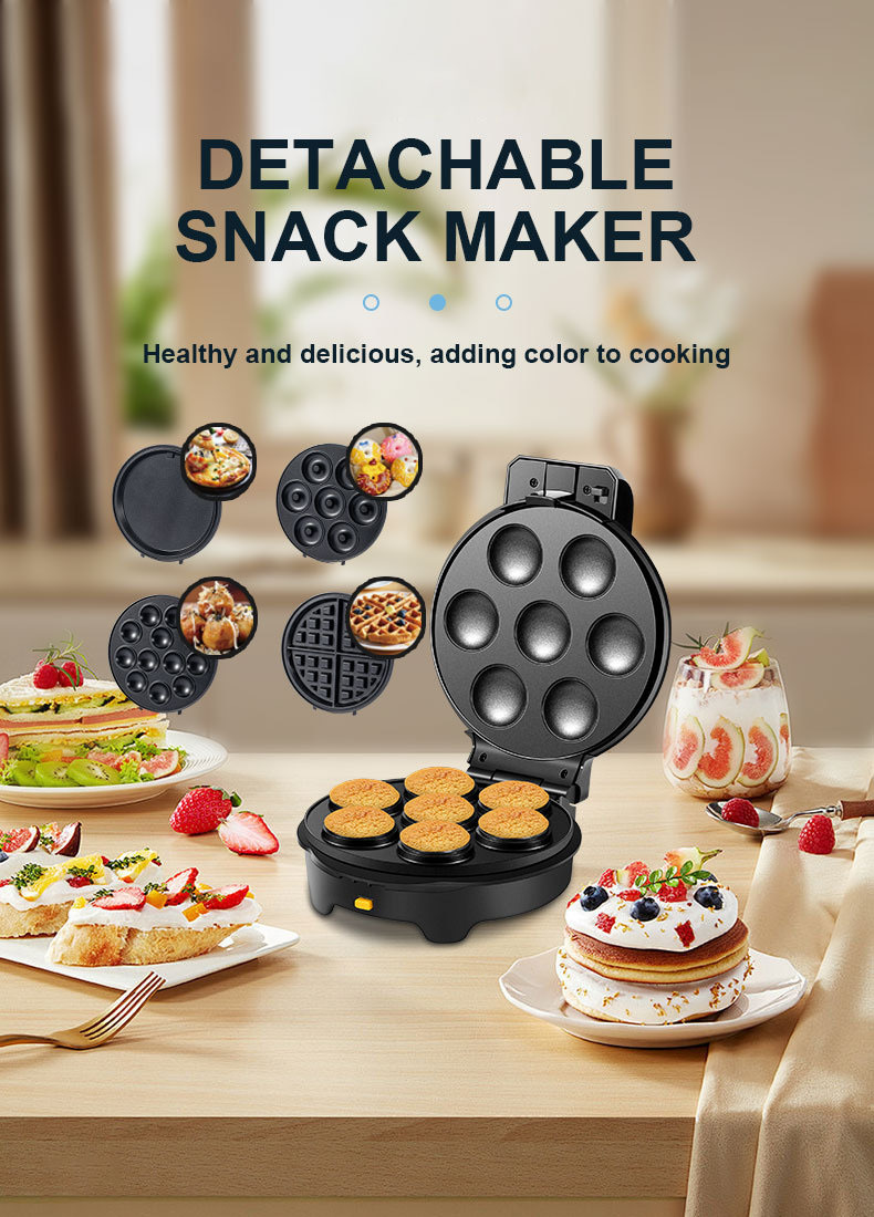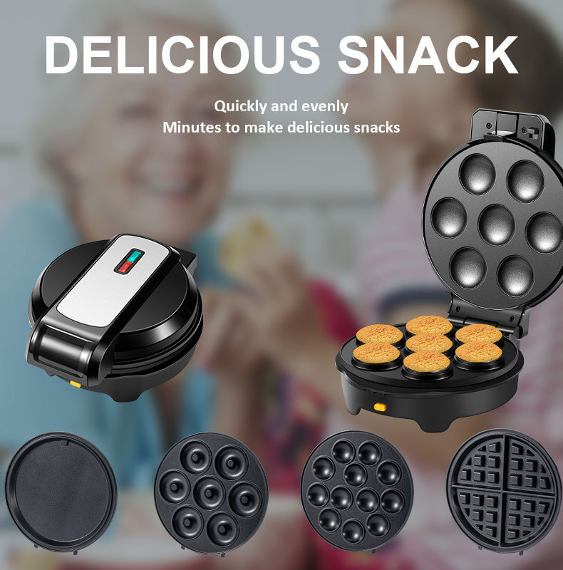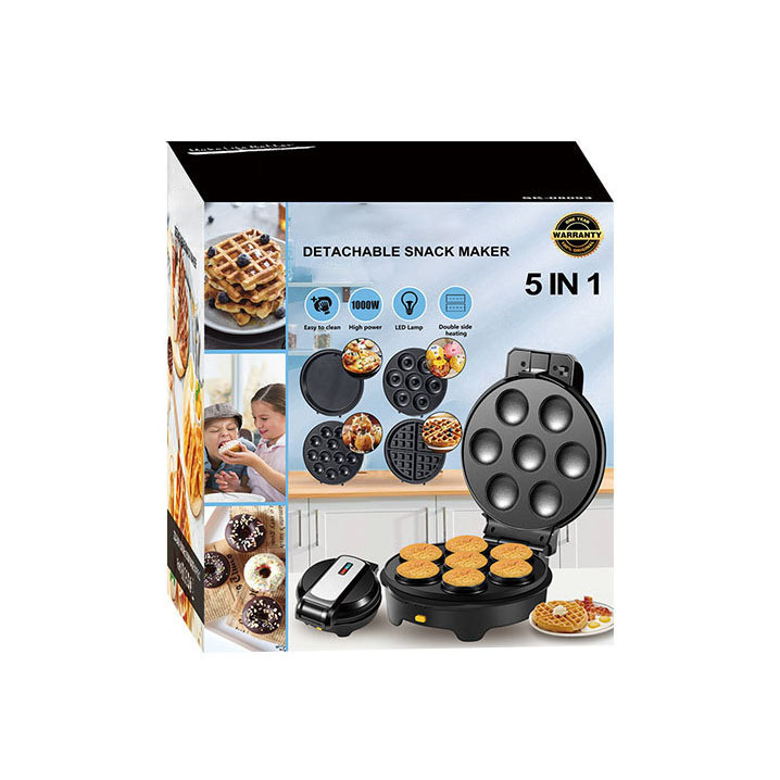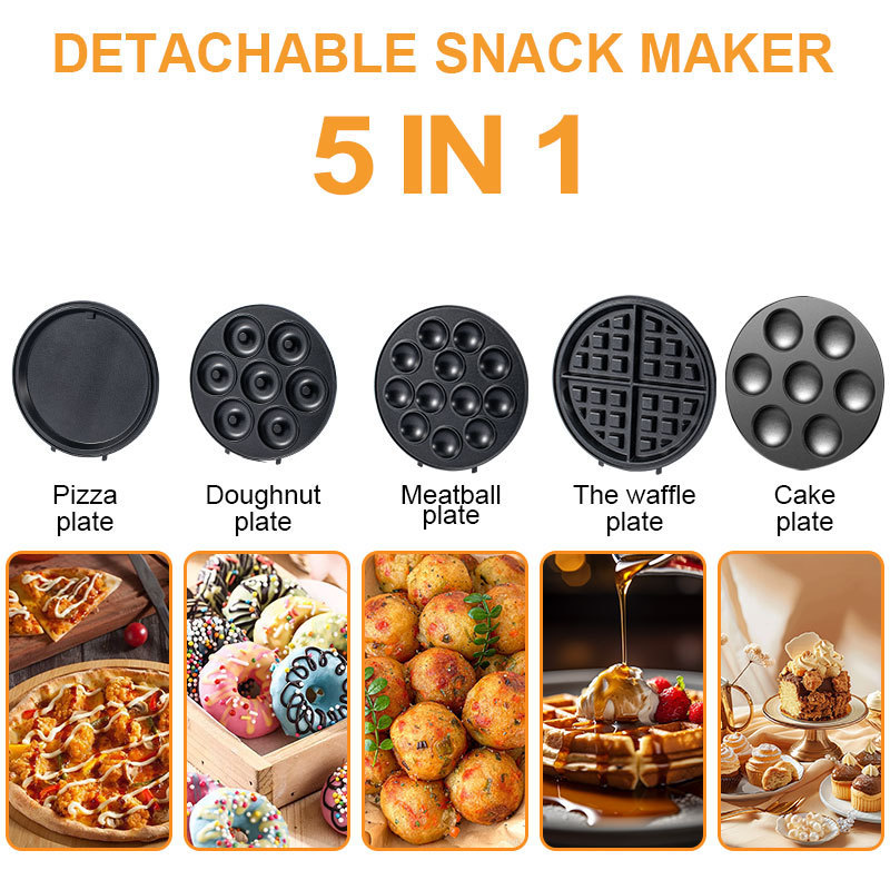 跨境五合一早餐机 家用可换盘面包披萨丸子华夫甜甜圈机三明治机