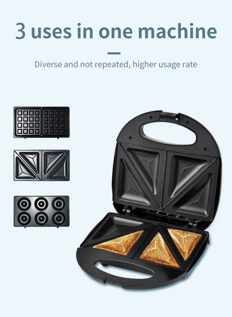 家用美规110V三合一早餐机 华夫饼机甜甜圈机三明治机换盘电饼铛