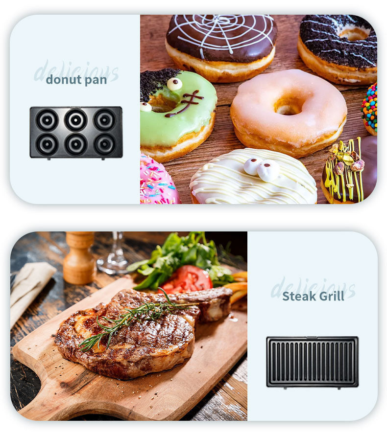美规110V三合一早餐机 华夫饼机甜甜圈机盘三明治机换盘电饼铛