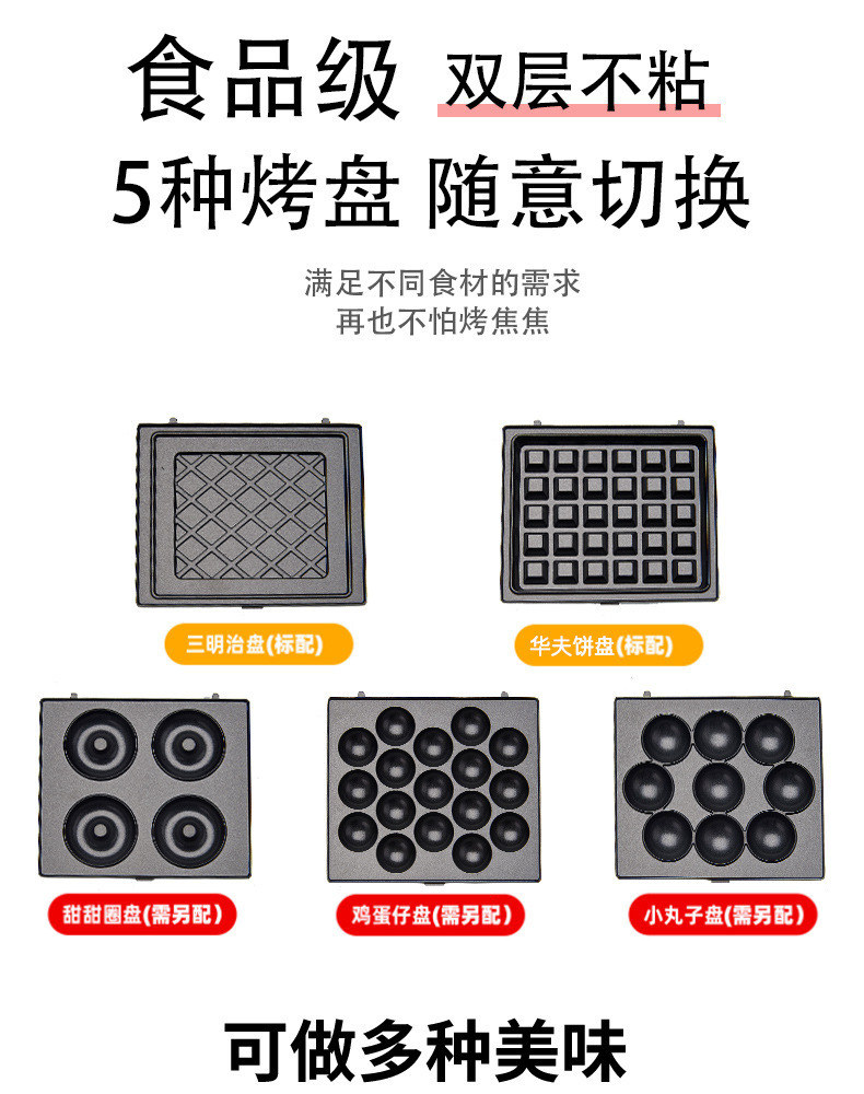 家用三明治机网红轻食机多功能早餐机华夫饼机甜甜圈面包机吐司机