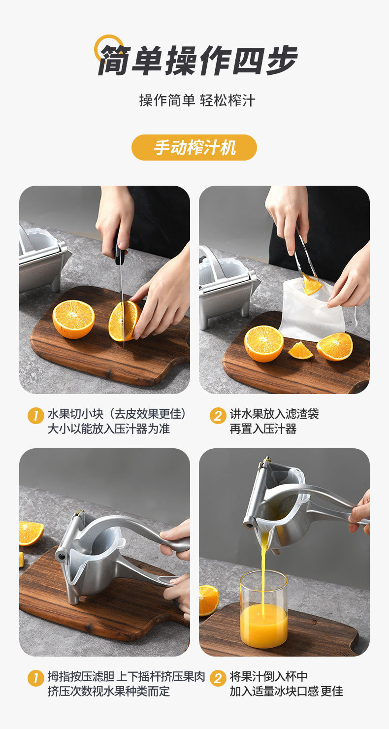 铝合金手动榨汁器家用榨汁机果蔬压榨器水果压汁机柠檬机原汁机