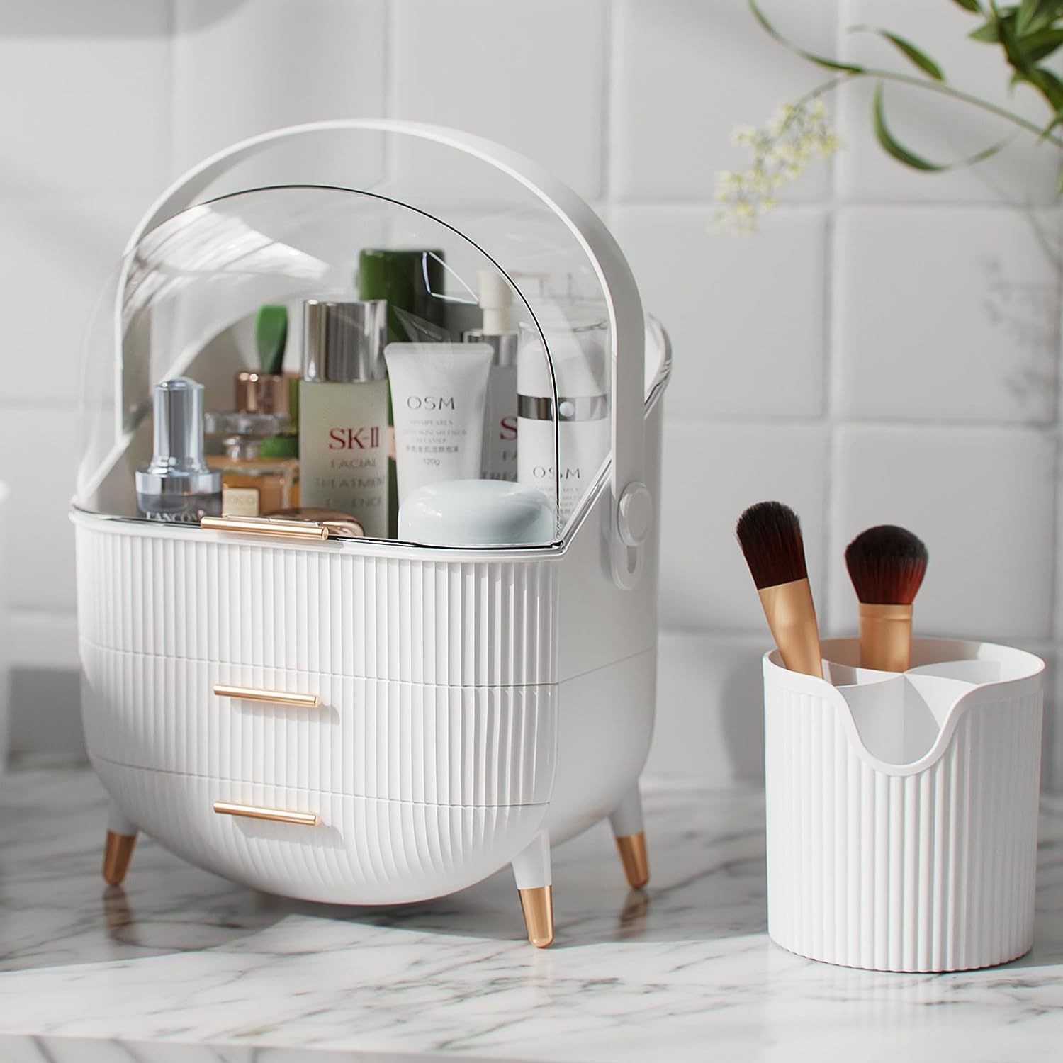 防尘款化妆品收纳盒手提大容量口红面膜护肤品家用桌面整理置物架