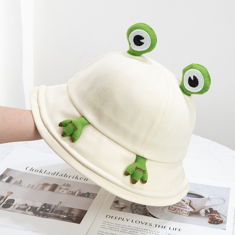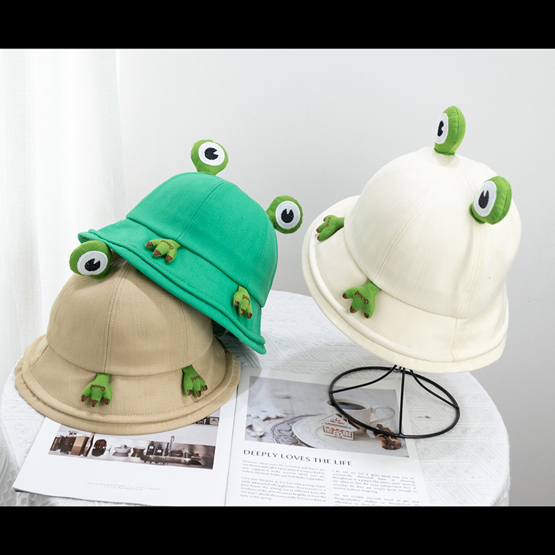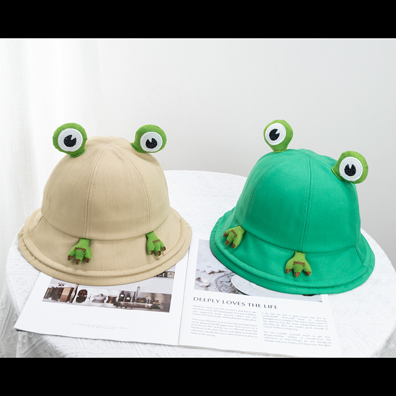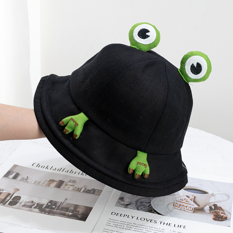 可爱青蛙帽子女春夏季韩版百搭渔夫帽日系学生卡通防晒遮阳帽盆帽