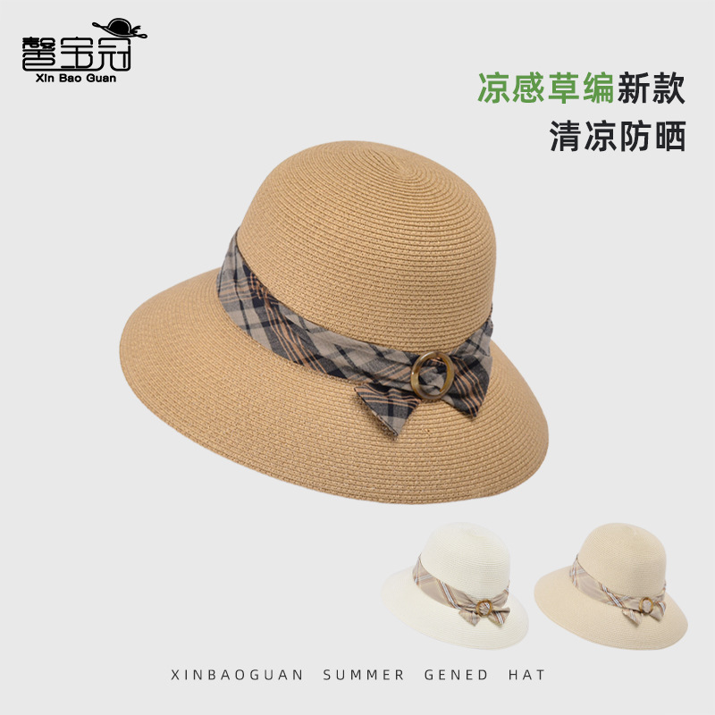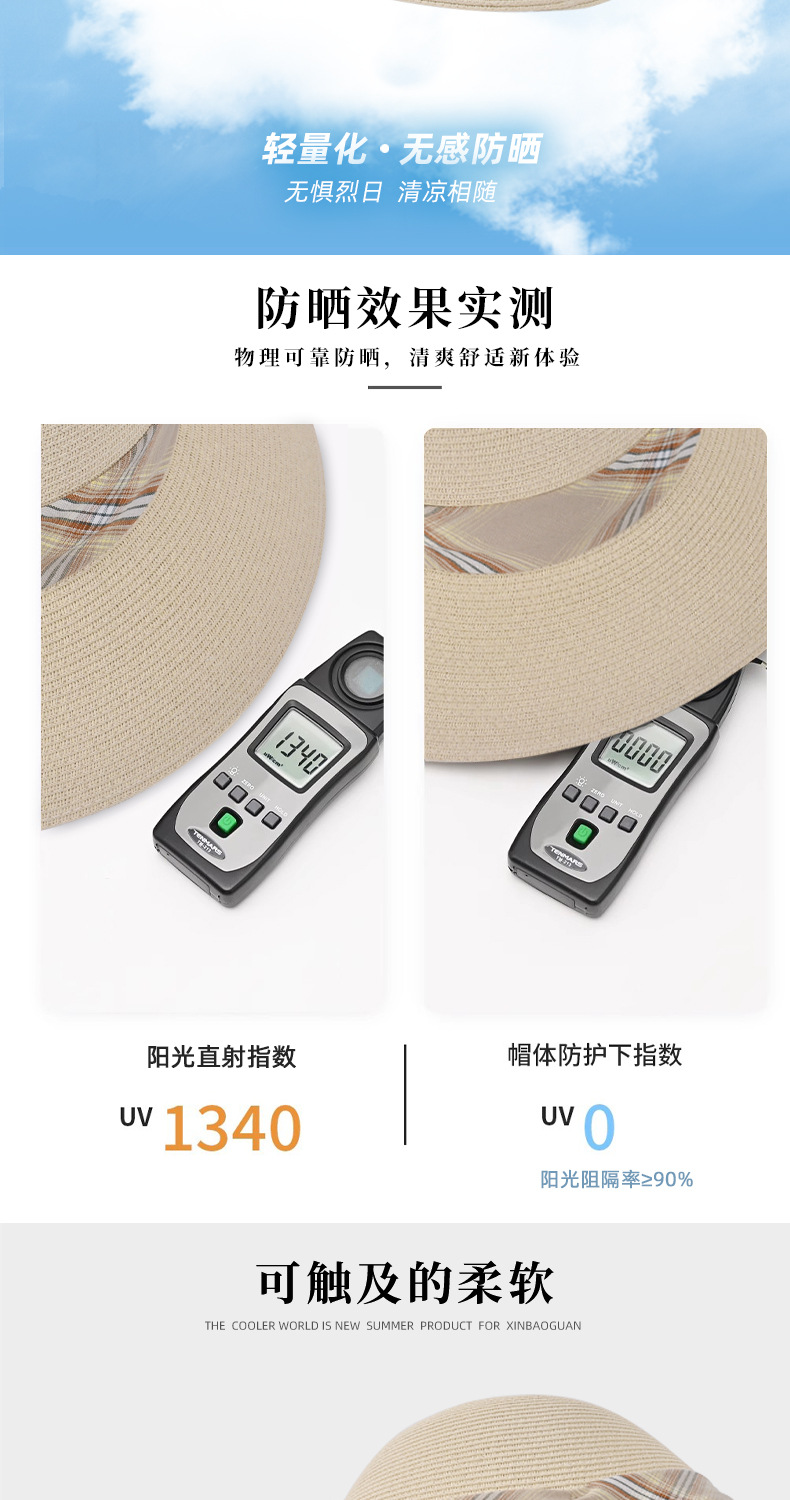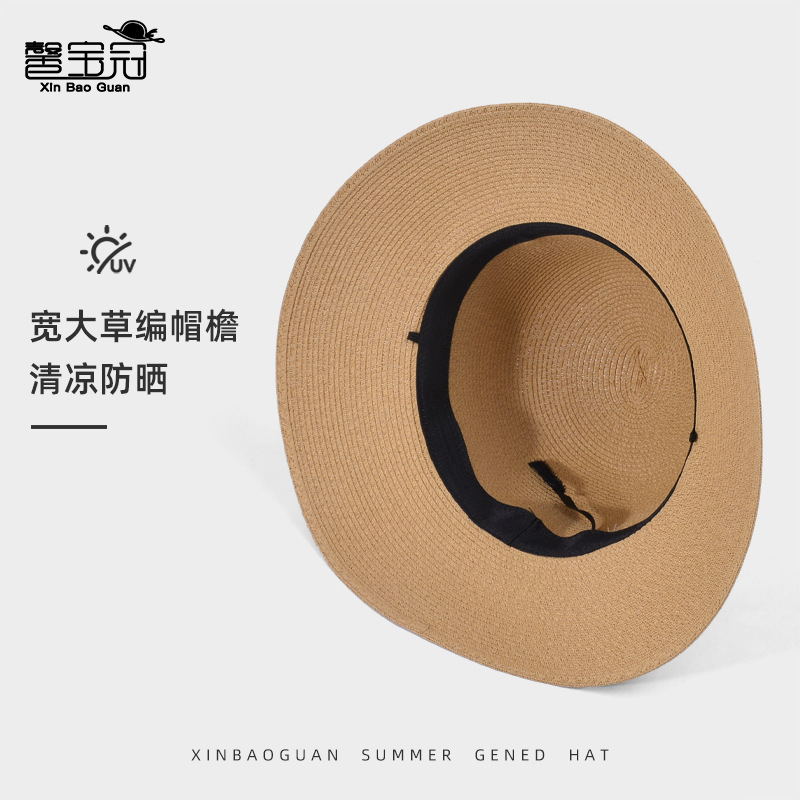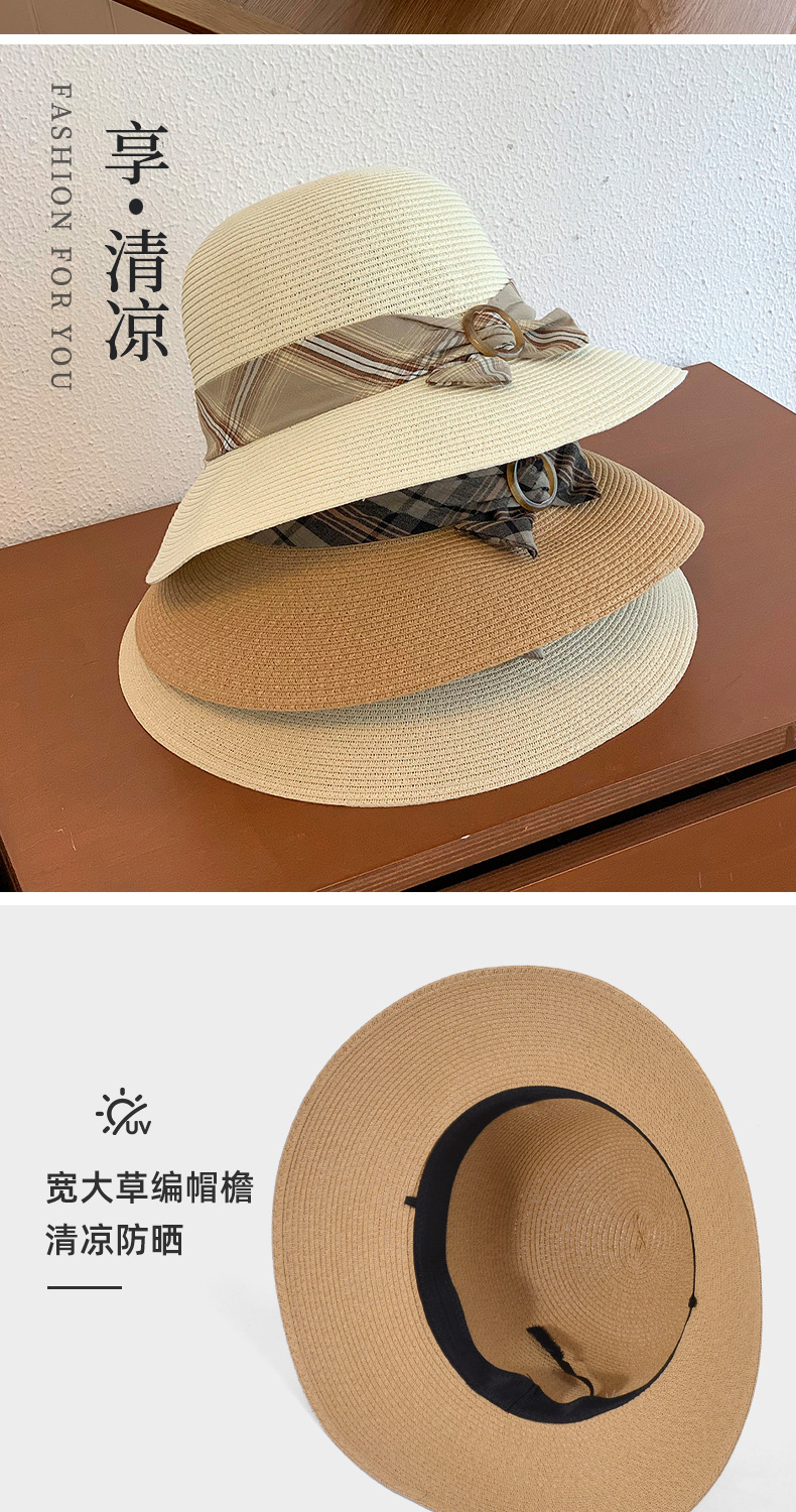 夏季沙滩太阳帽赫本风大帽檐草编帽子女高级感时尚百搭防晒遮阳帽