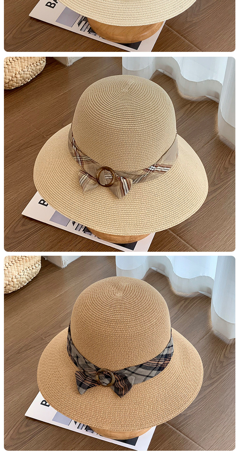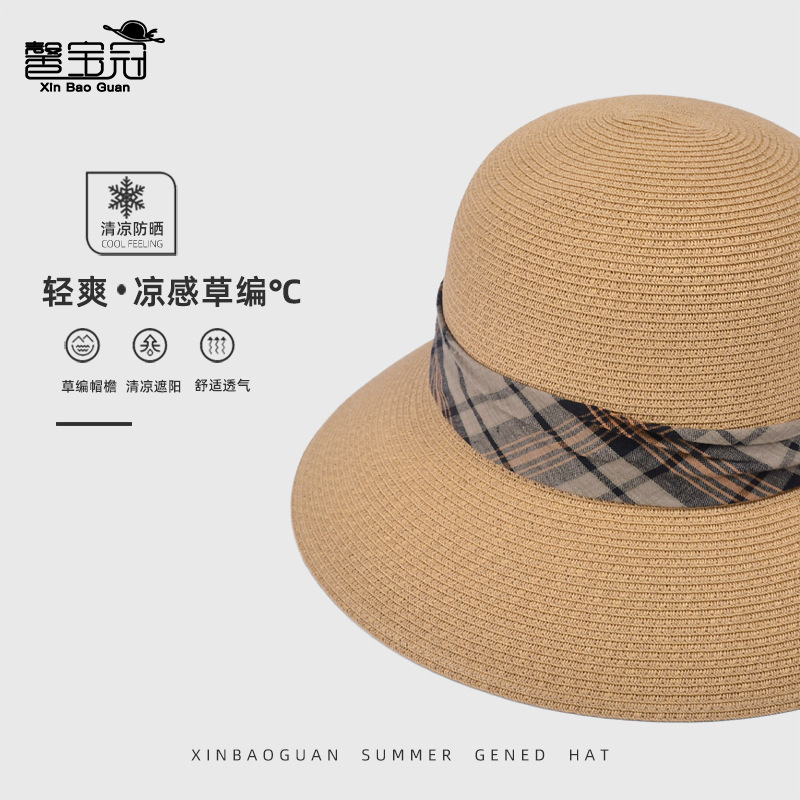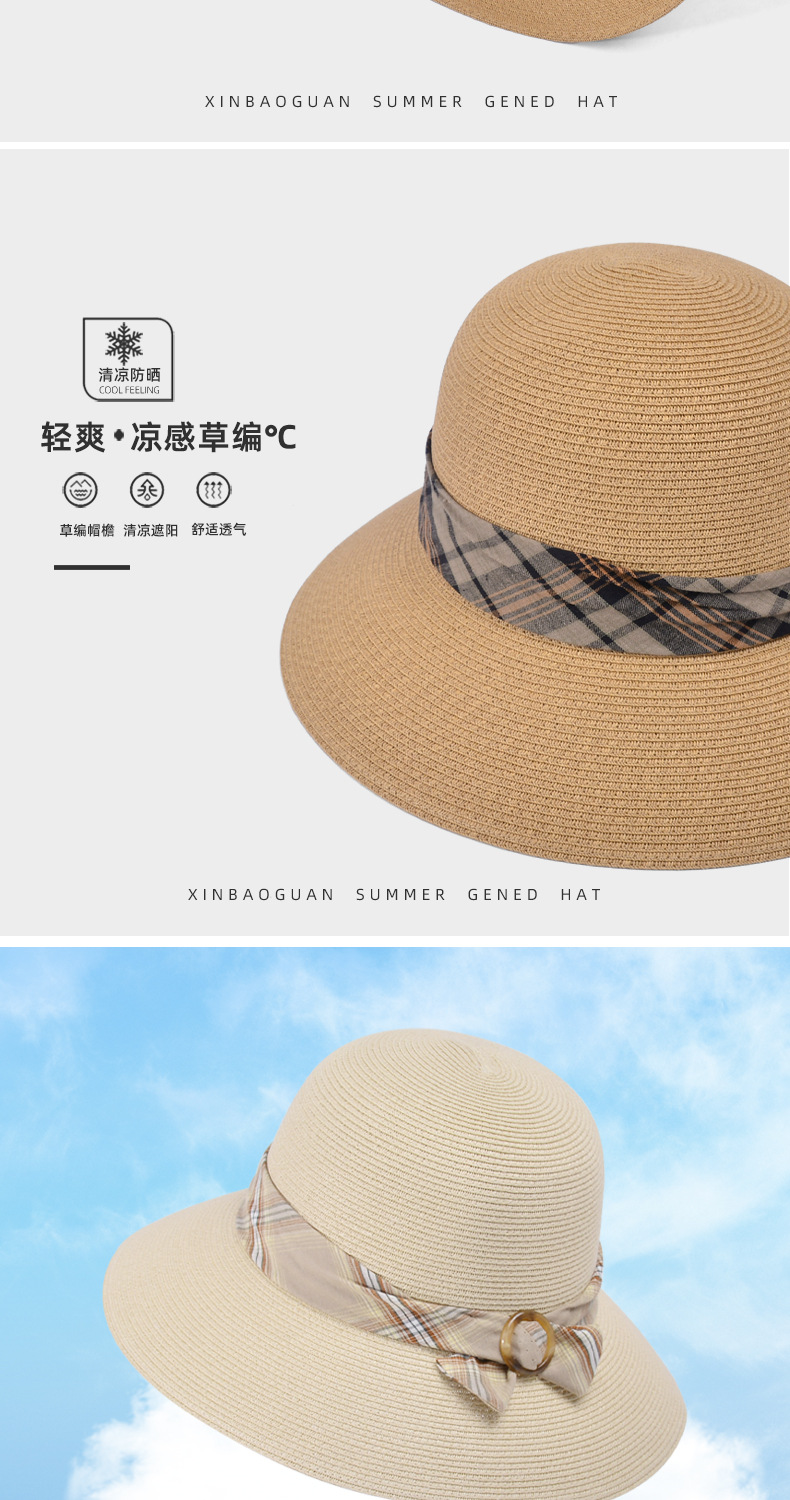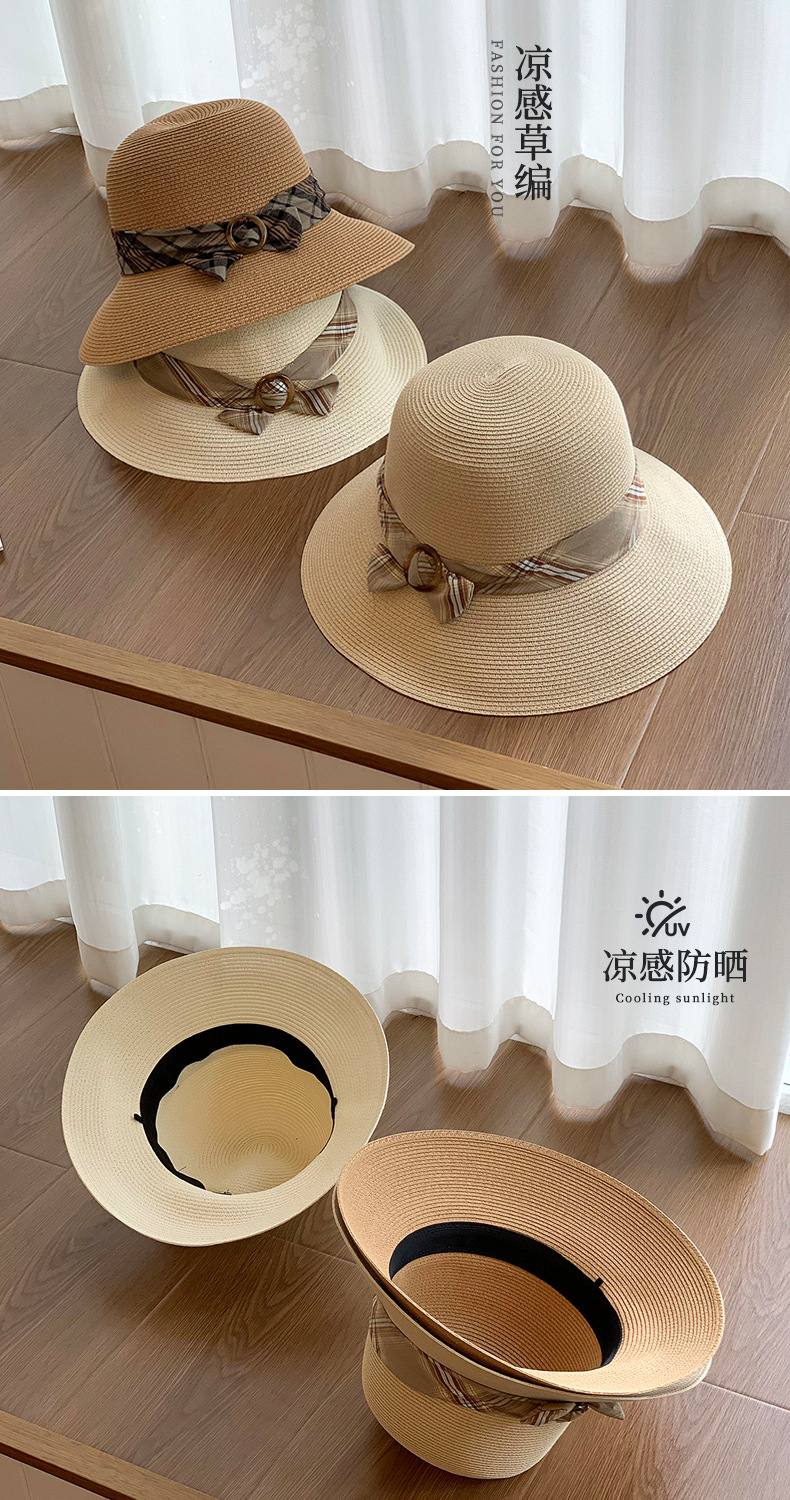 夏季沙滩太阳帽赫本风大帽檐草编帽子女高级感时尚百搭防晒遮阳帽