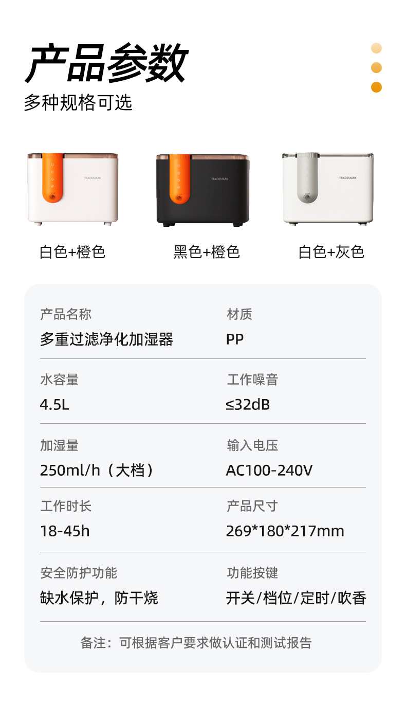 跨境新品4.5L大容量加湿器家用超声波大雾量静音空气香薰加湿器