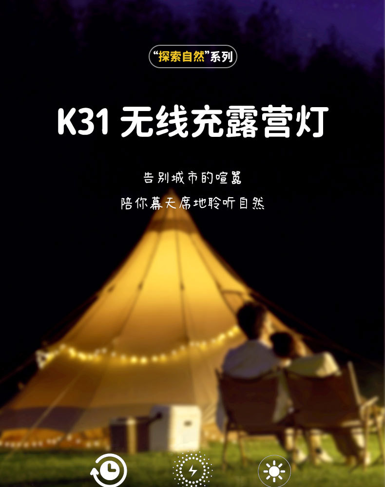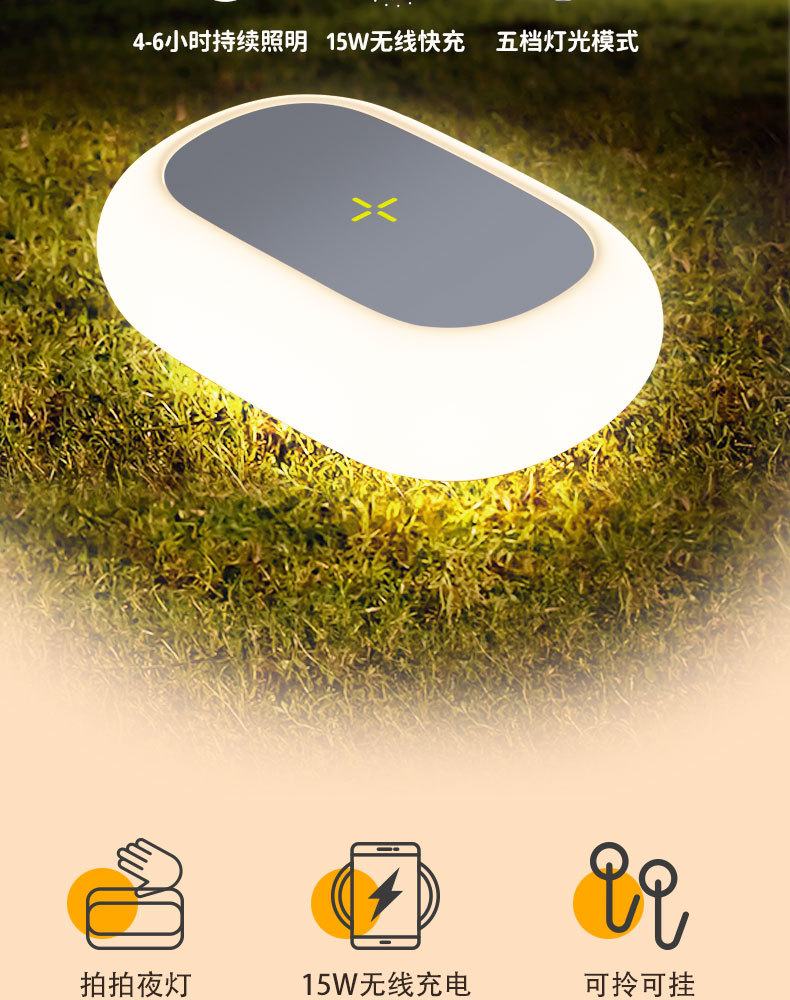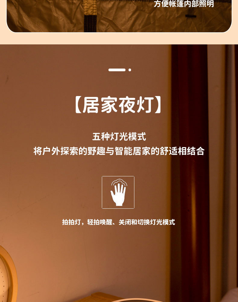 跨境新款多功能户外露营灯大容量续航照明便携式可充电挂立帐篷灯