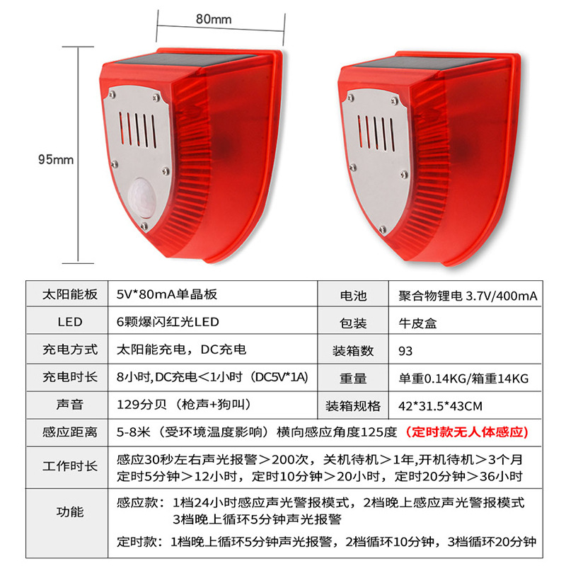 | solar alarm animal repeller(太阳能报警器动物驱赶器) | USD $8.0 | 10963 piece available |