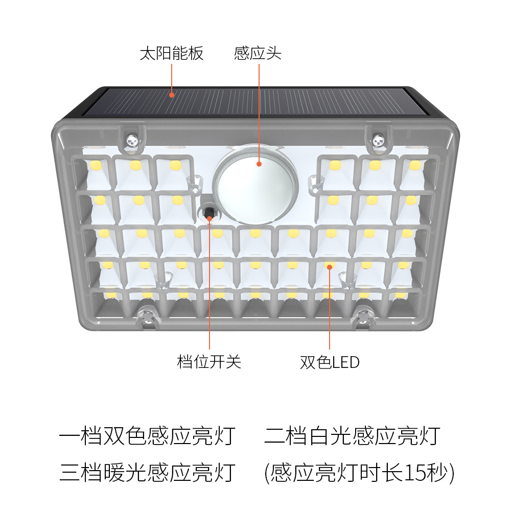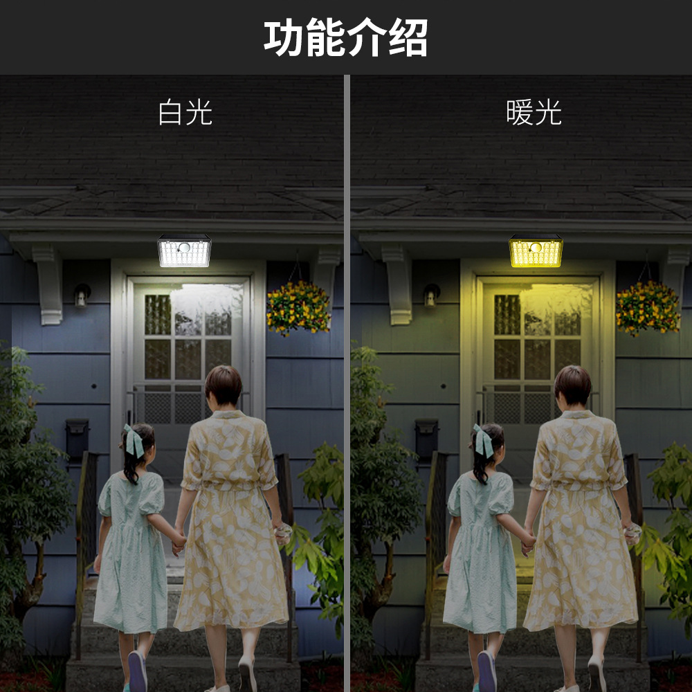 太阳能室外壁灯人体感应三模式LED壁灯花园别墅庭院小夜灯新品