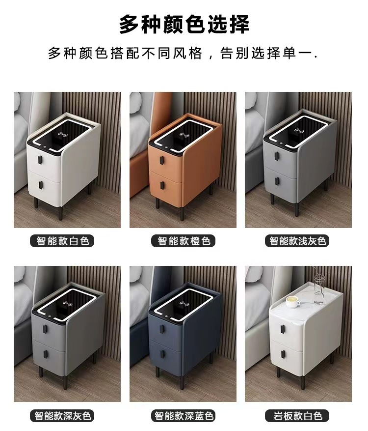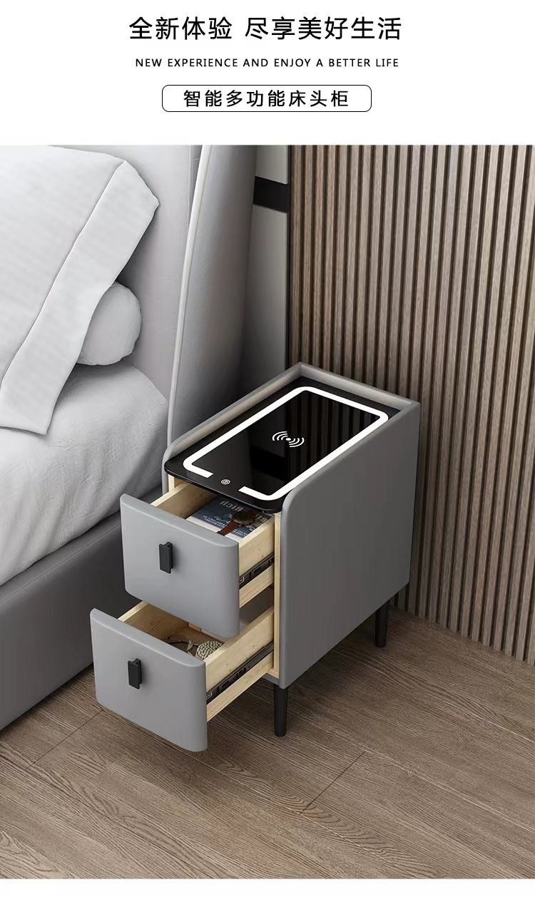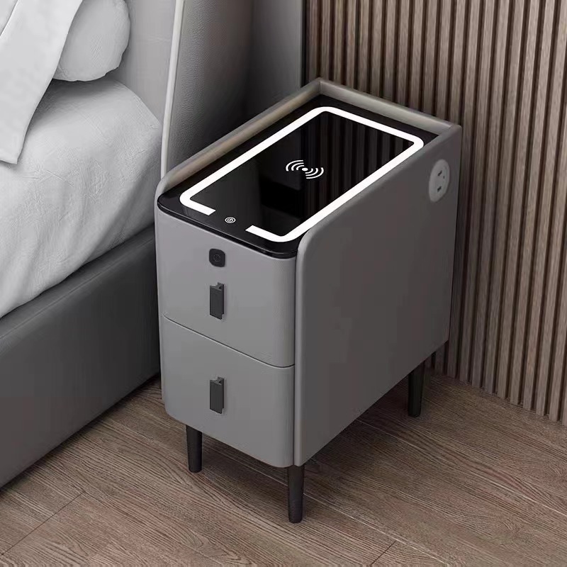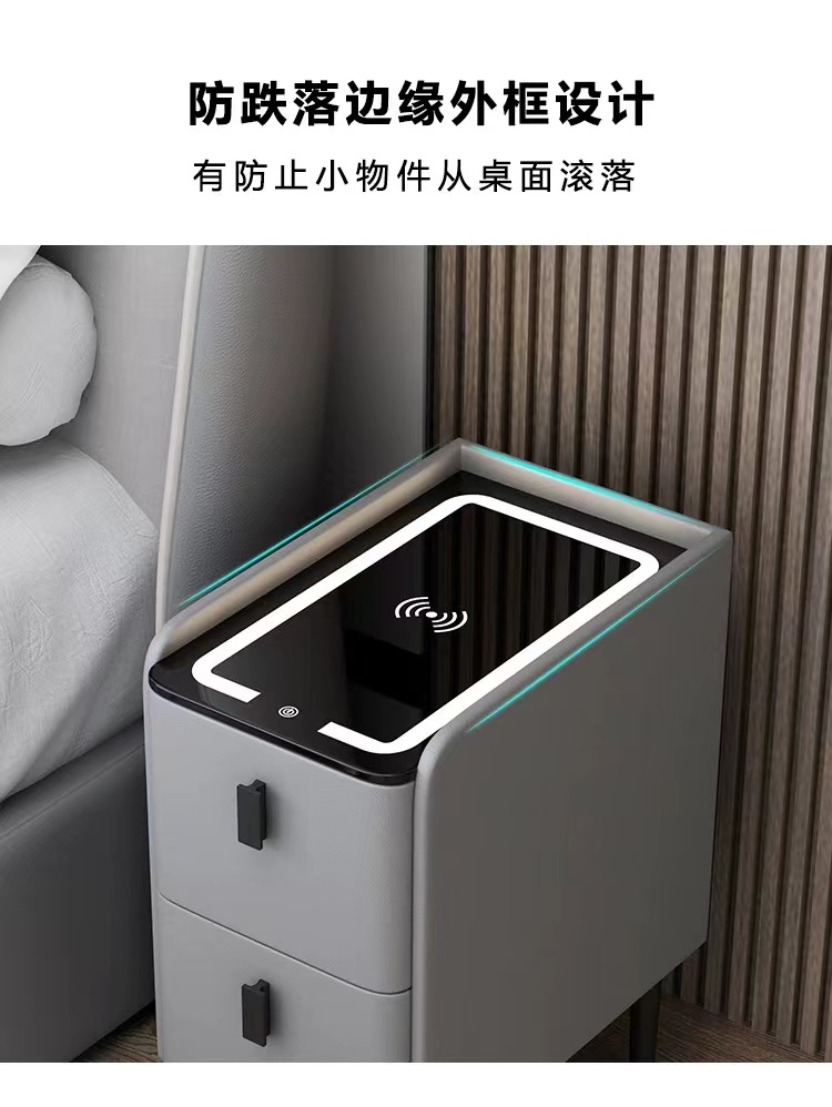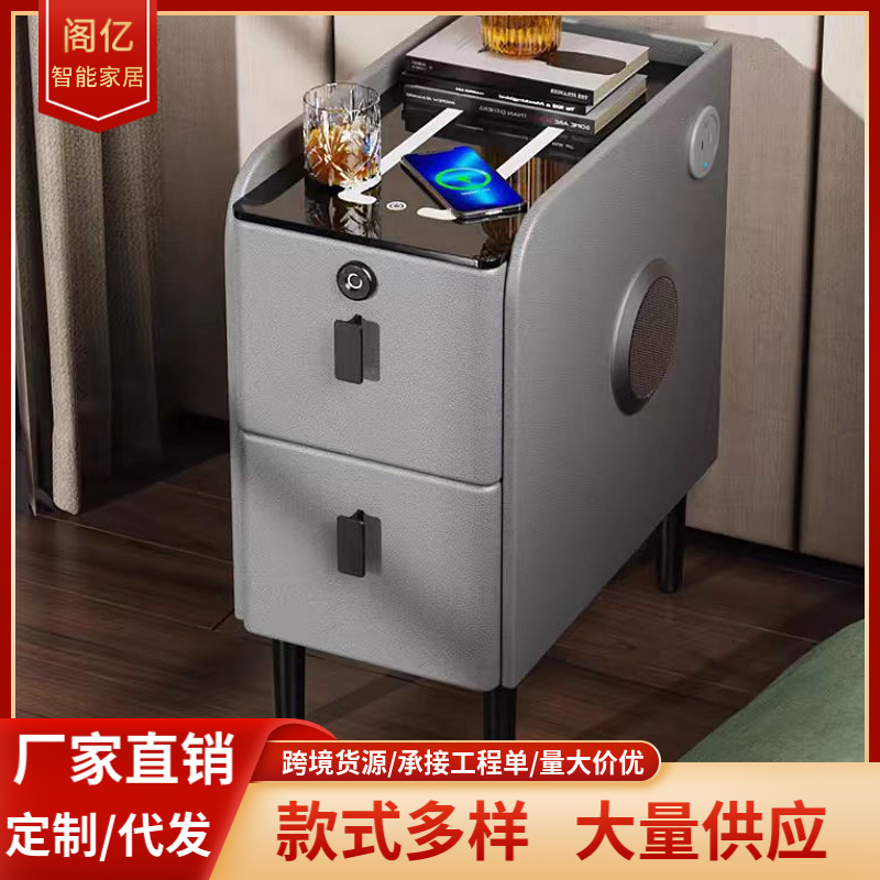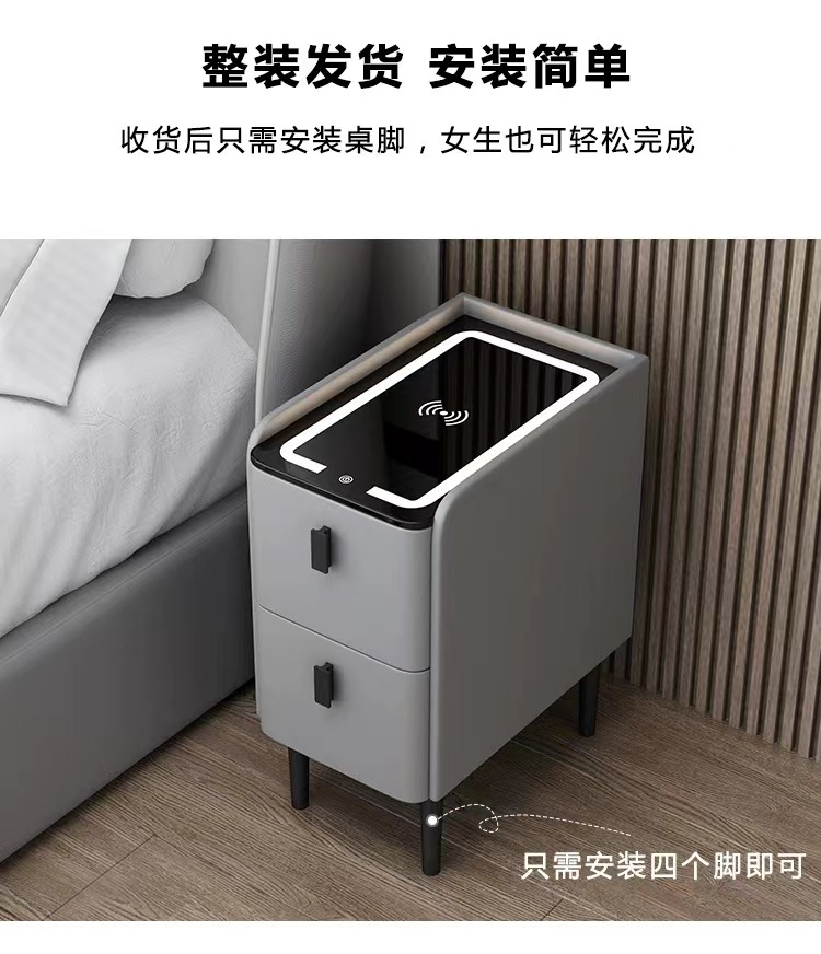小型智能床头柜实木多功能无线充电指纹锁简约现代家用极窄床边柜