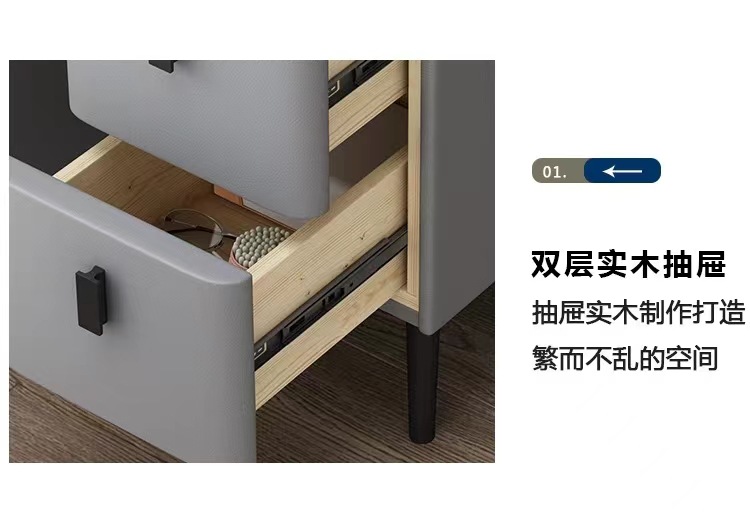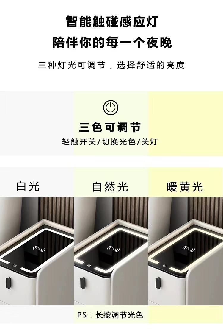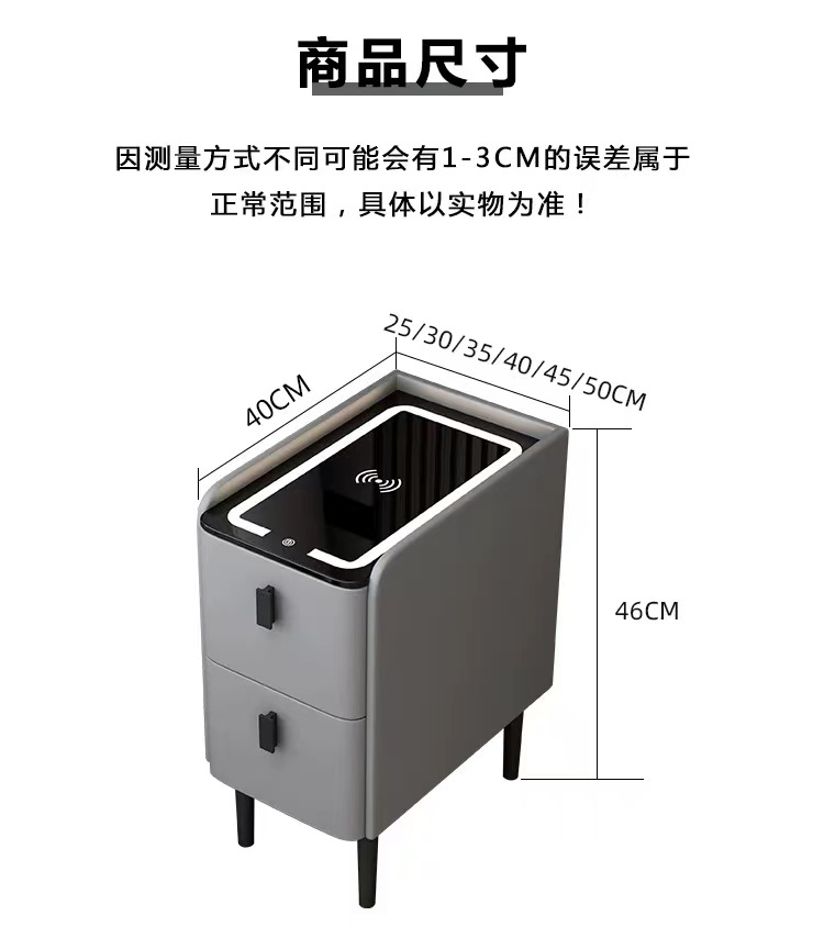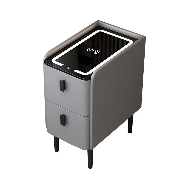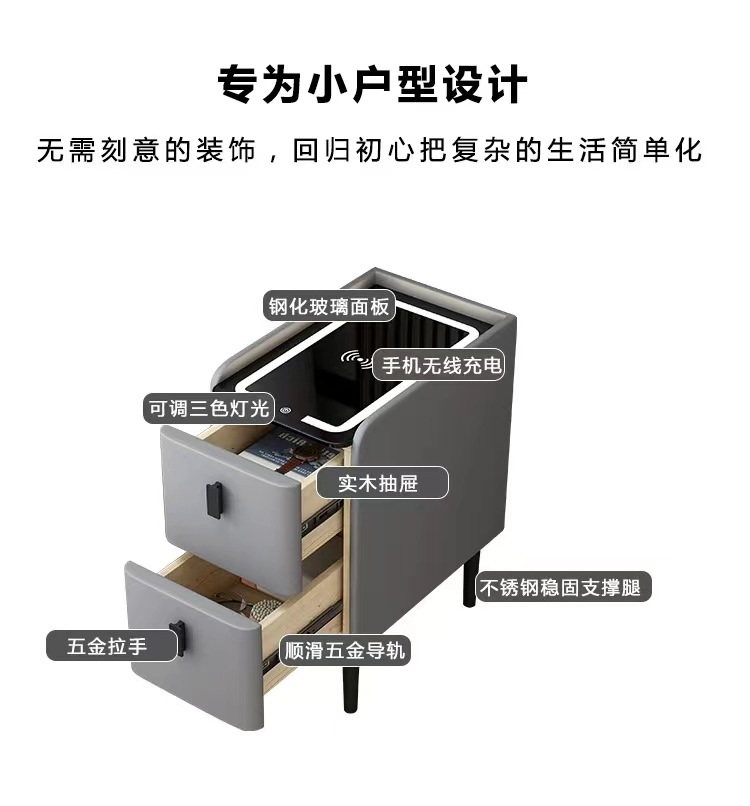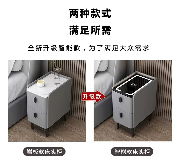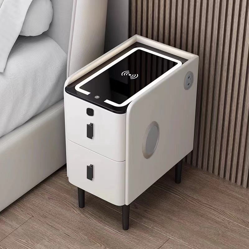 小型智能床头柜实木多功能无线充电指纹锁简约现代家用极窄床边柜