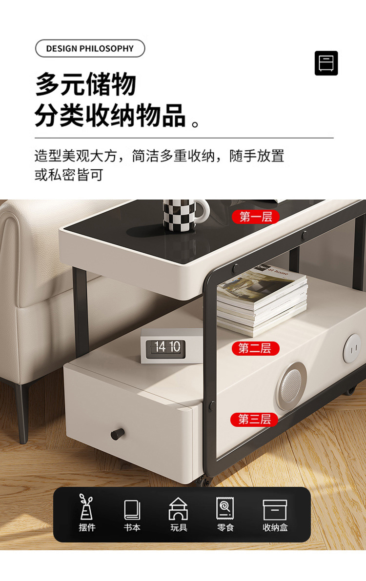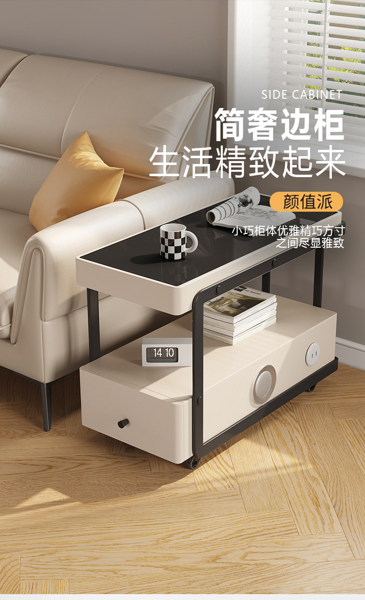 新款移动边几客厅沙发侧边柜多功能隔断柜轻奢夹缝柜奶油风边柜几