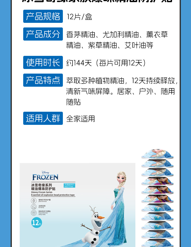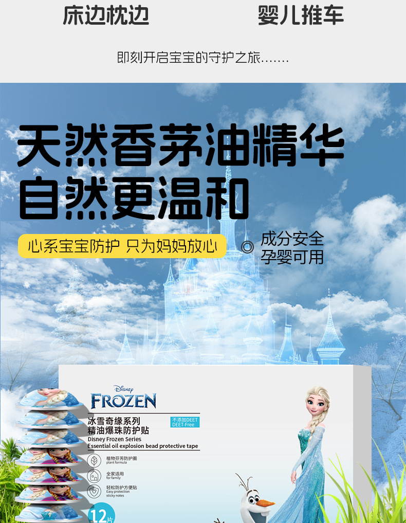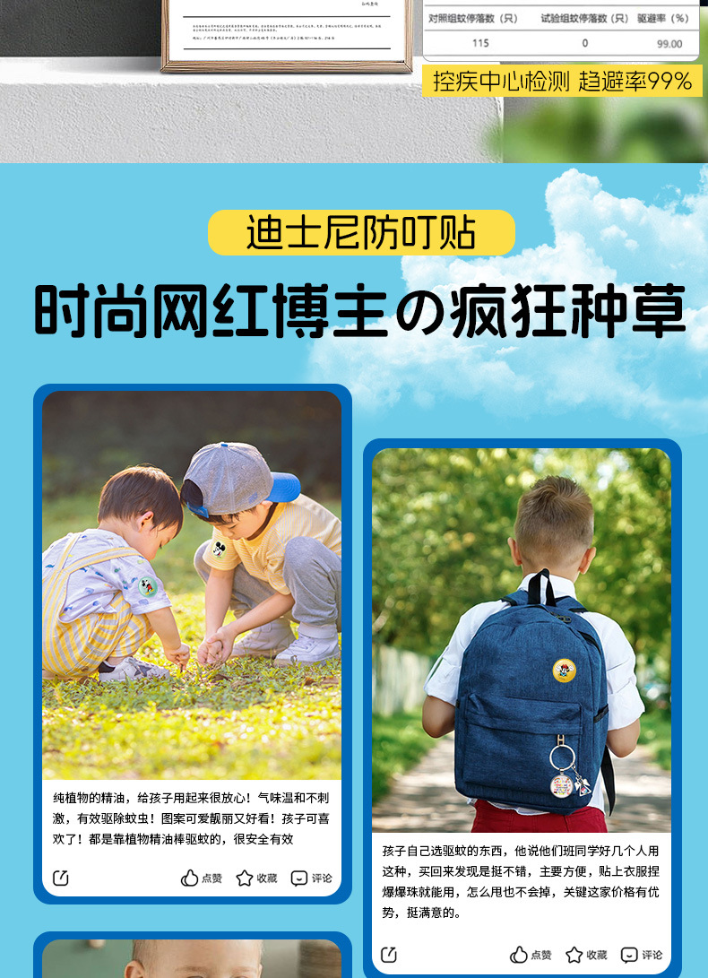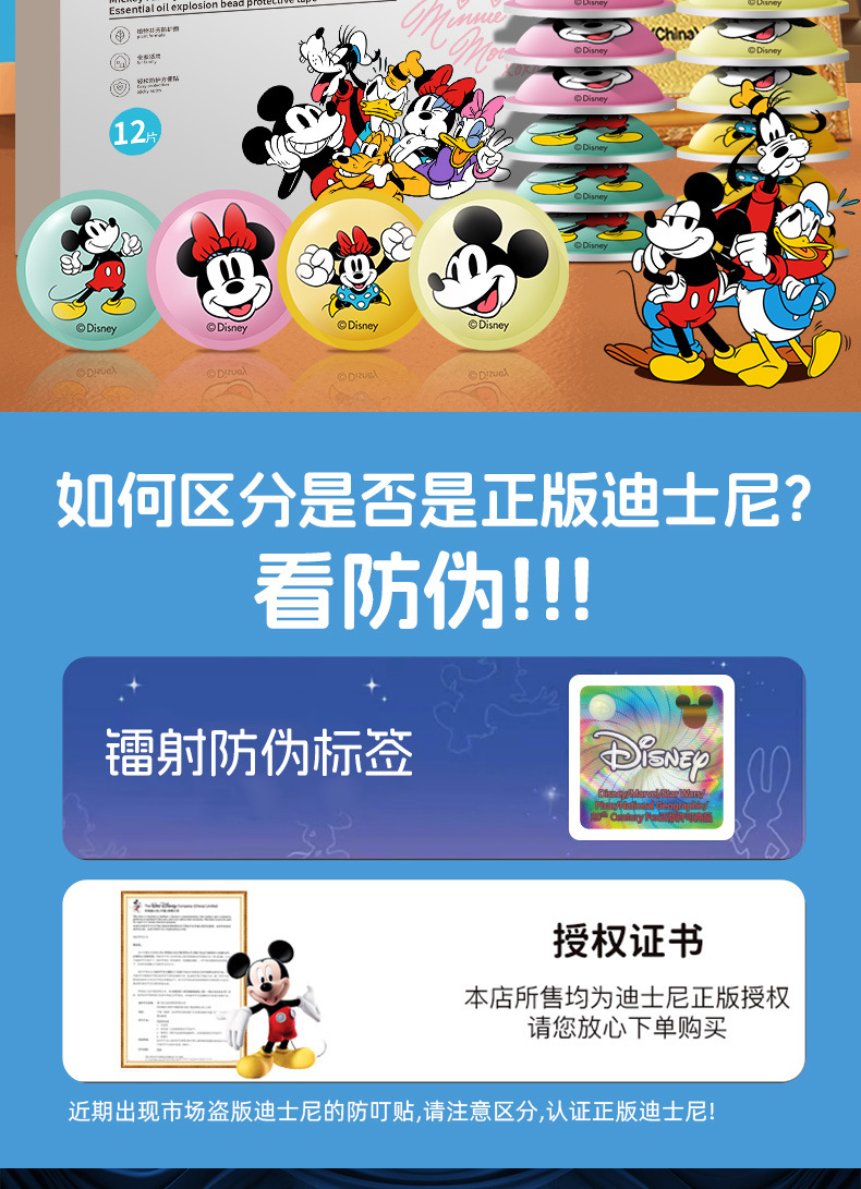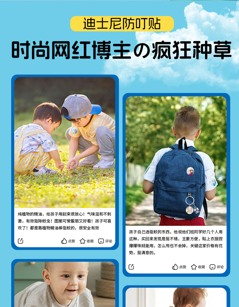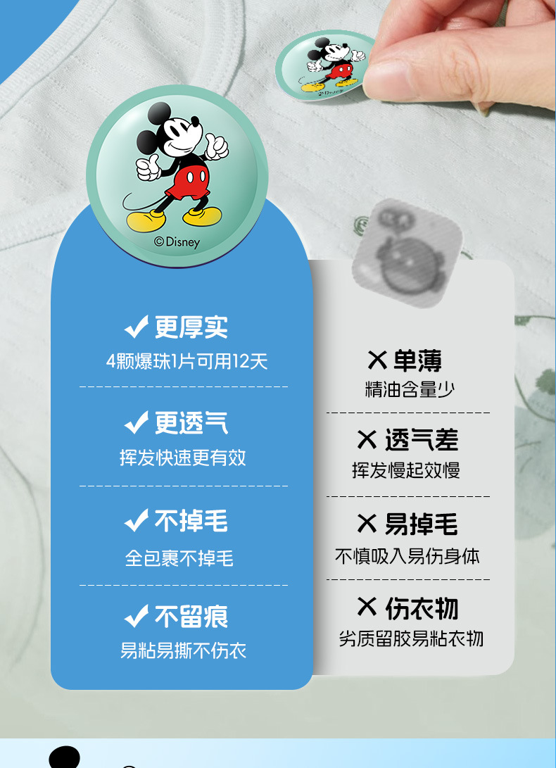 迪士/尼防叮精油贴防护贴婴幼儿童卡通驱蚊神器成人宝宝户外随身