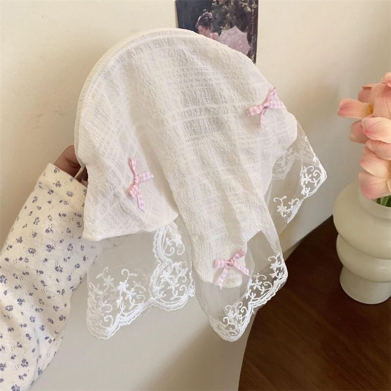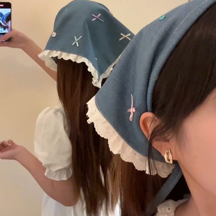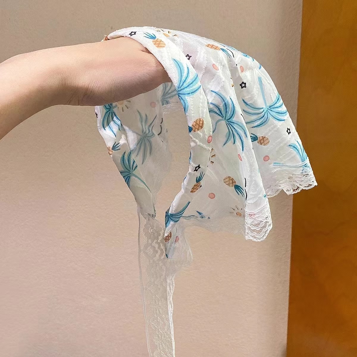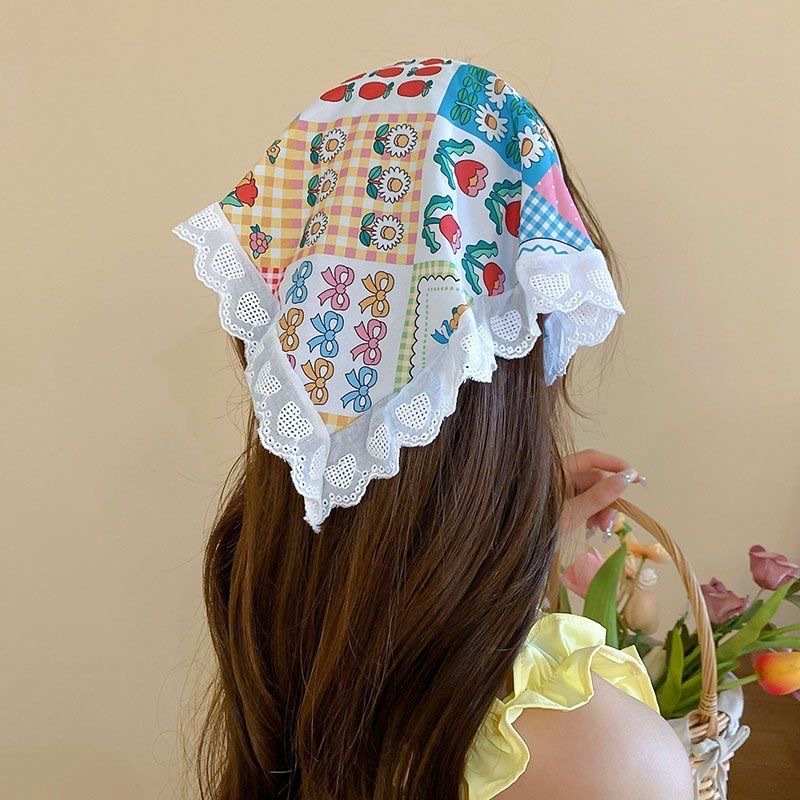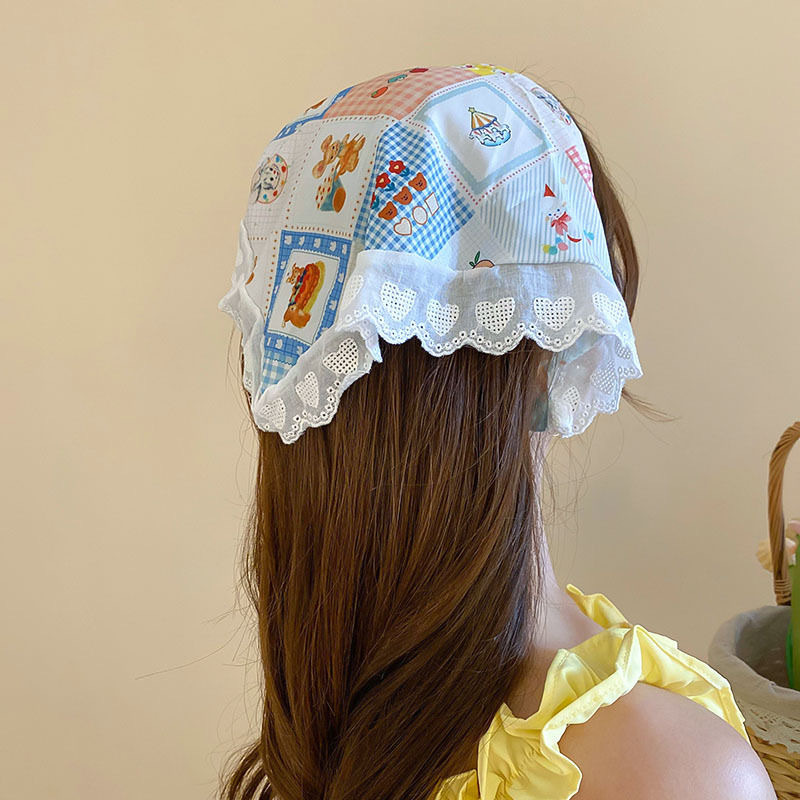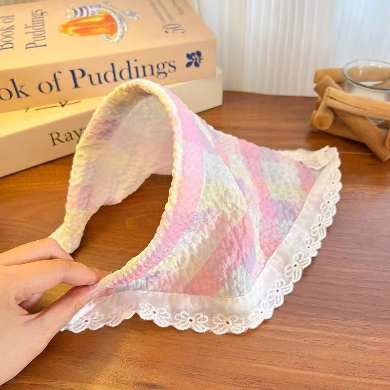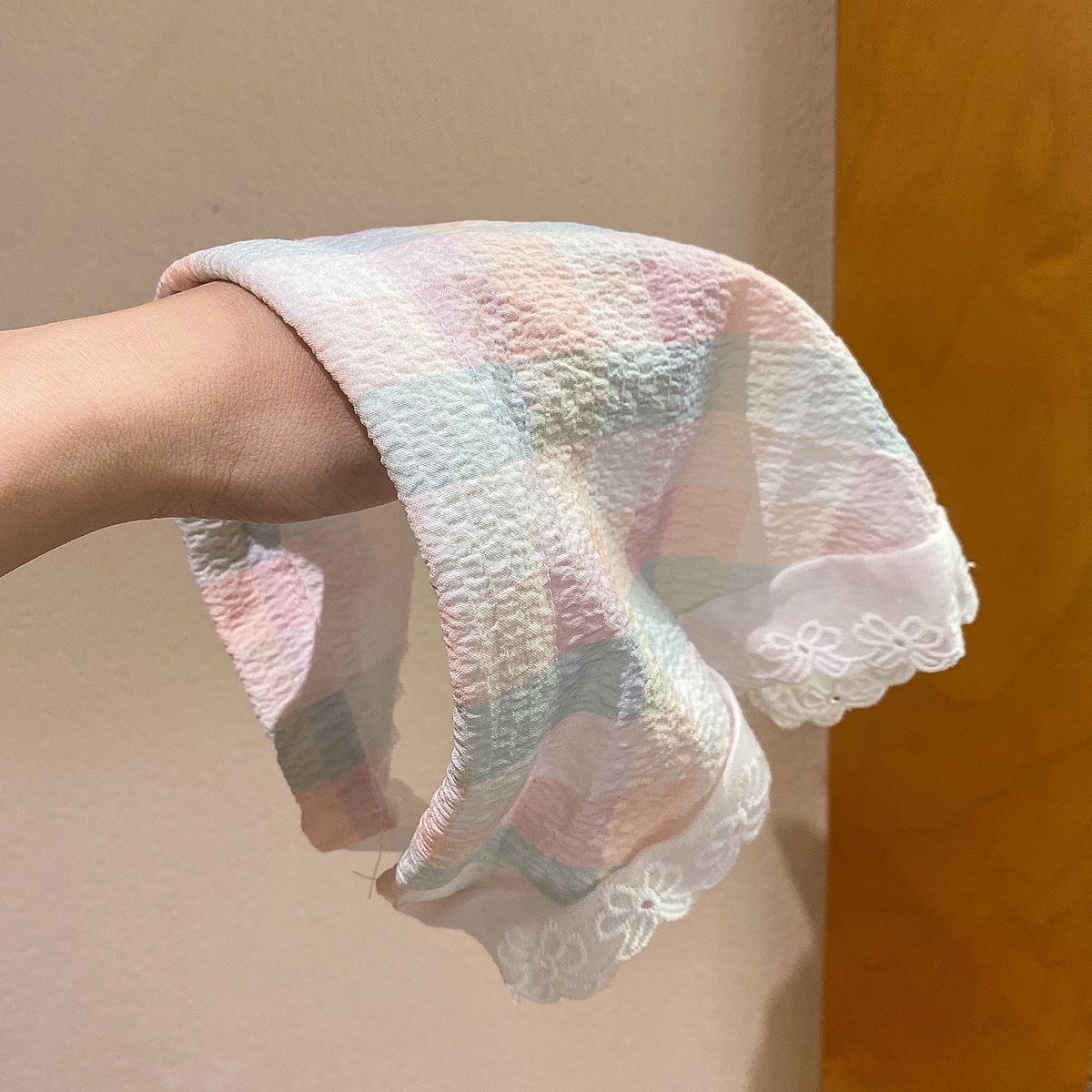田园风蕾丝发箍新款高炉顶三角巾头箍法式复古格子甜美可爱头巾