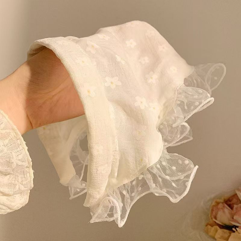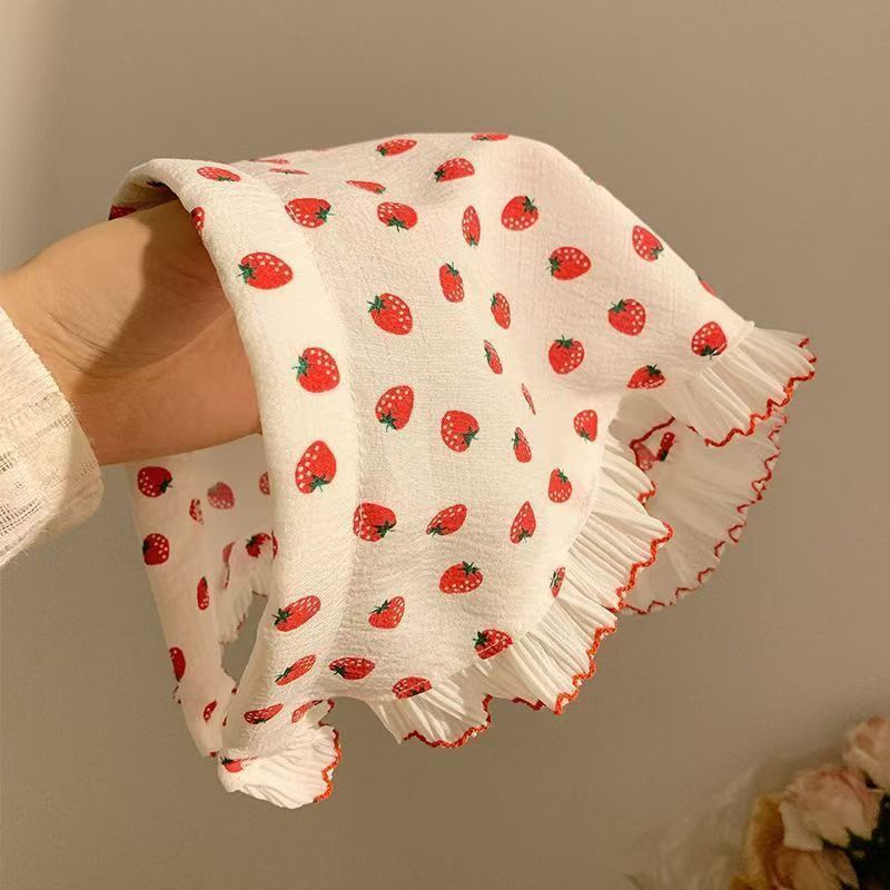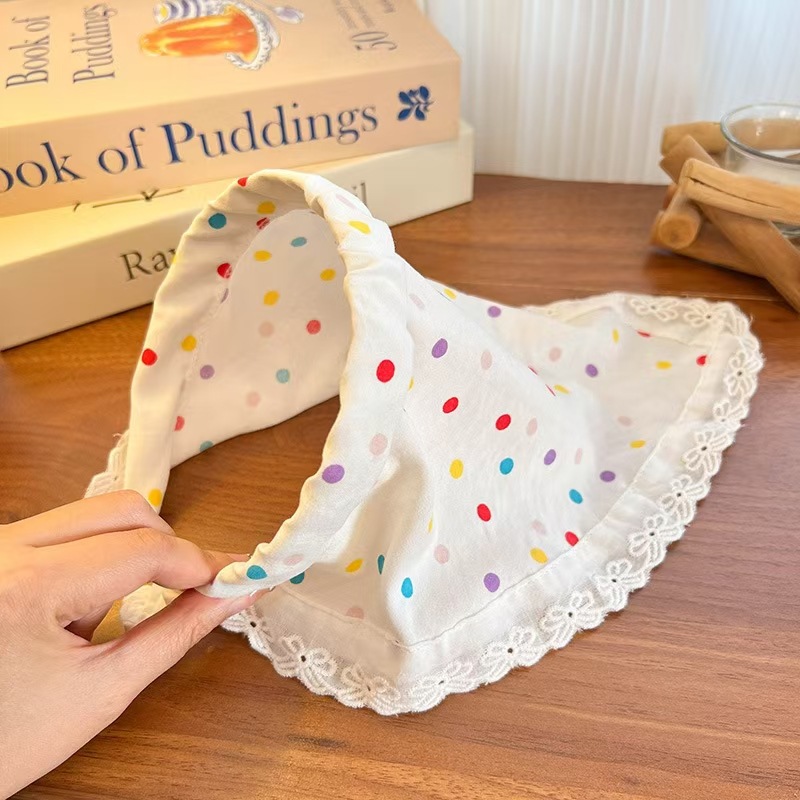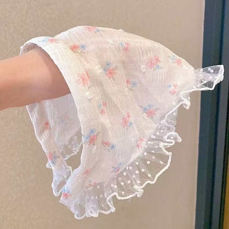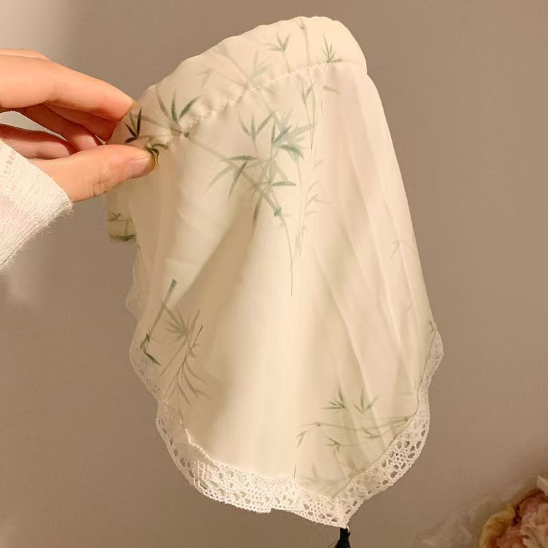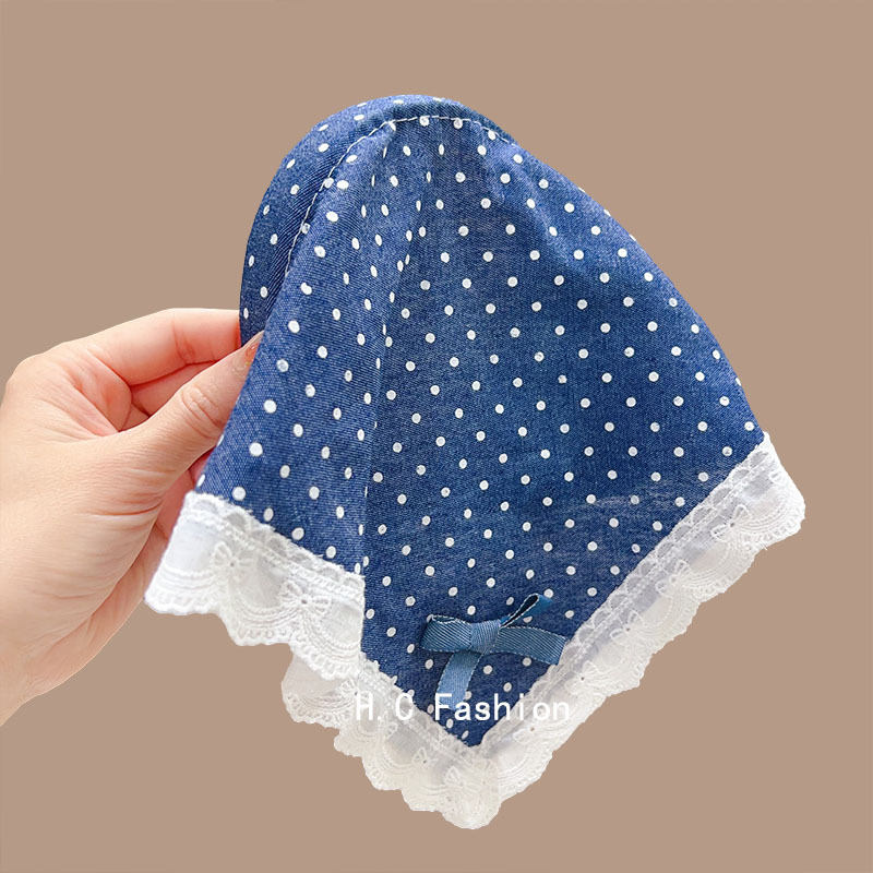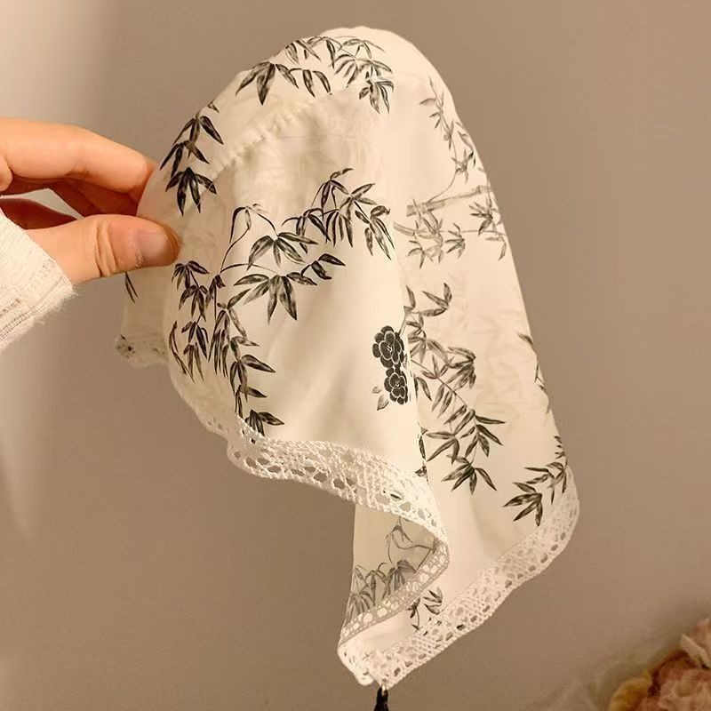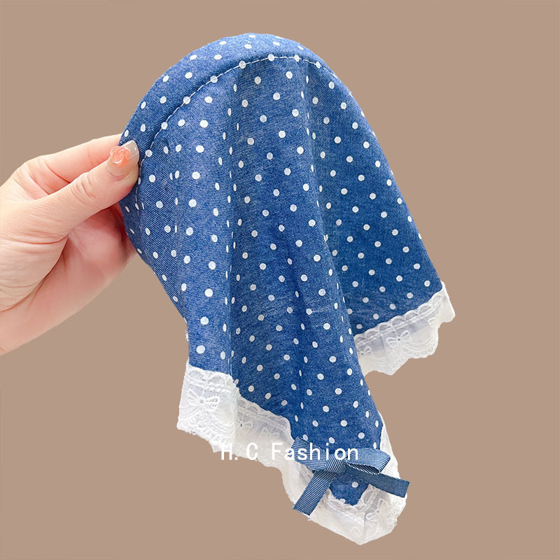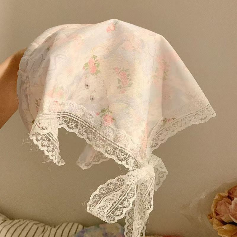 田园风蕾丝发箍新款高炉顶三角巾头箍法式复古格子甜美可爱头巾