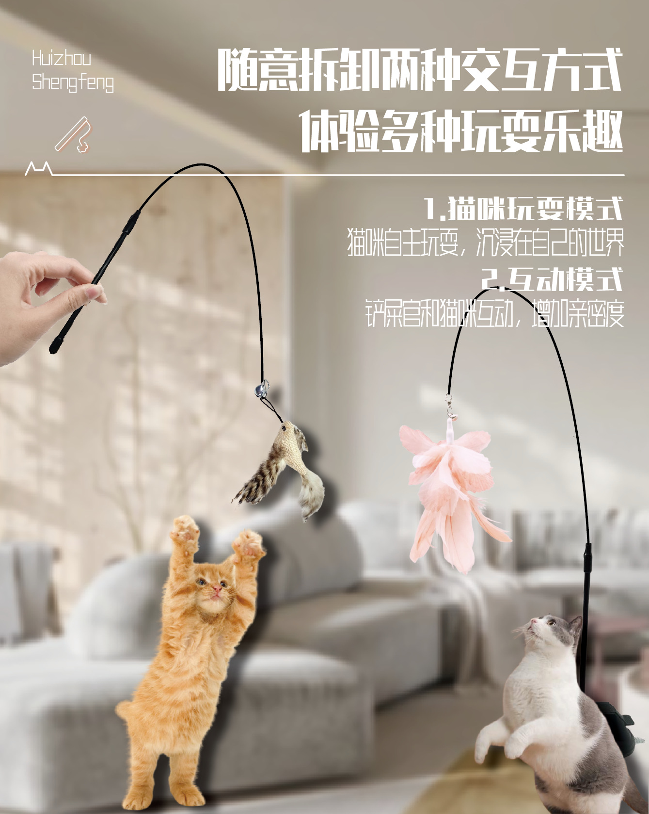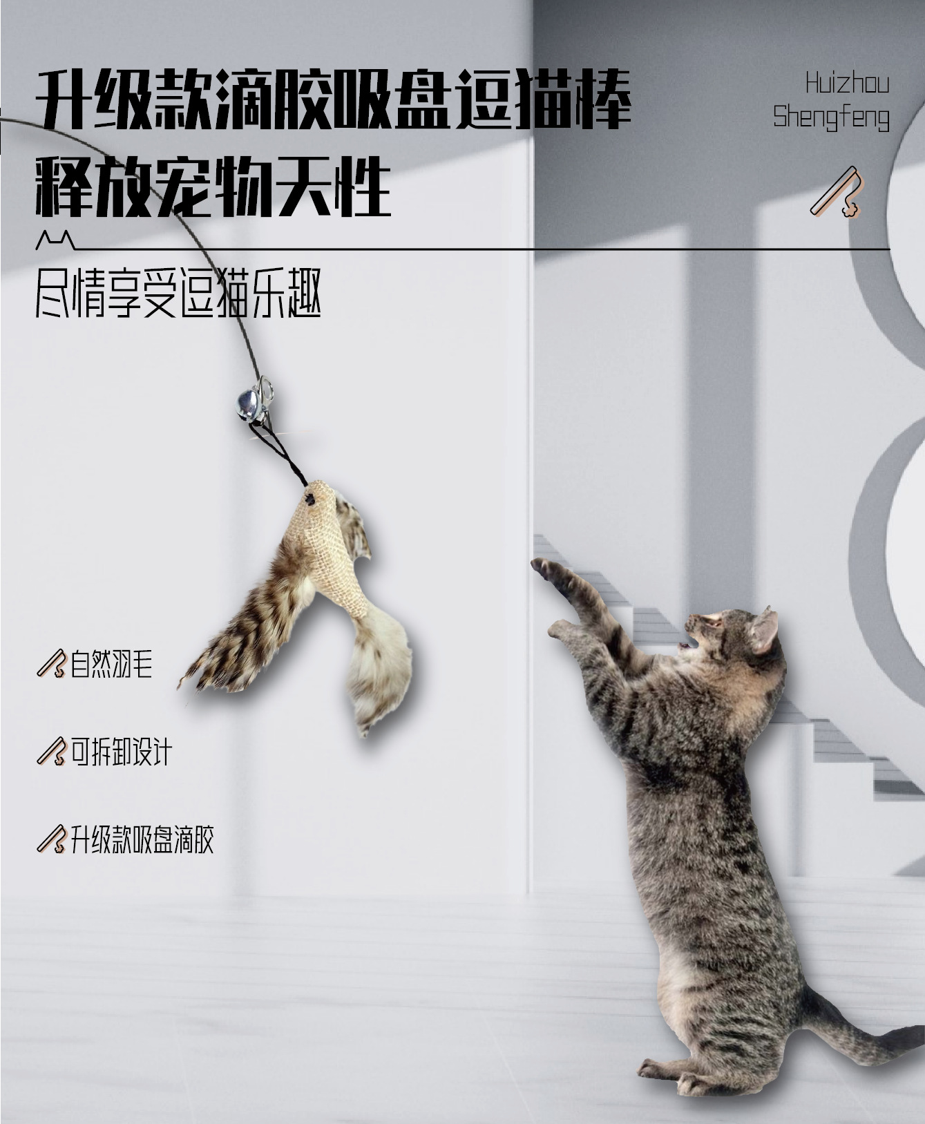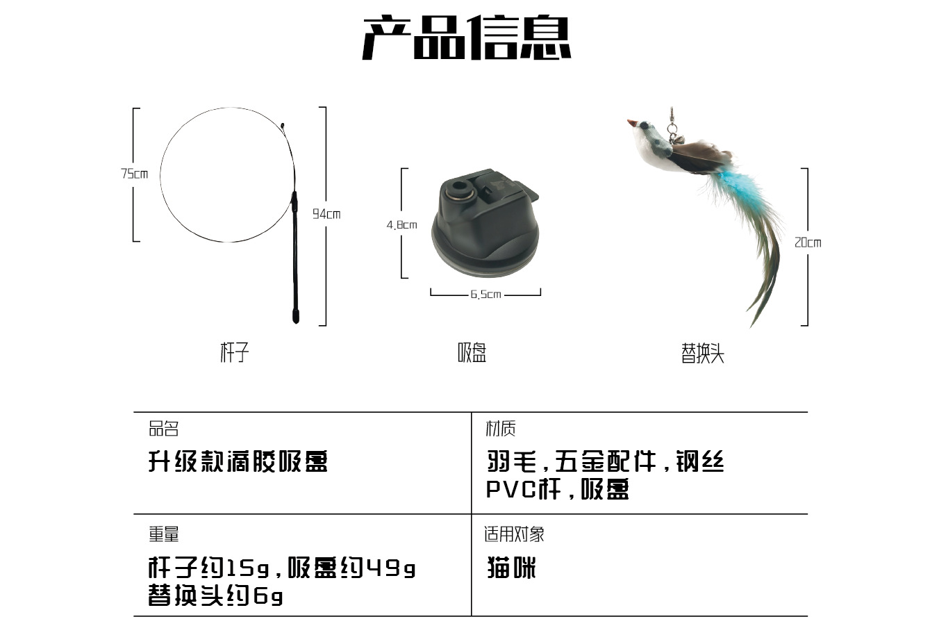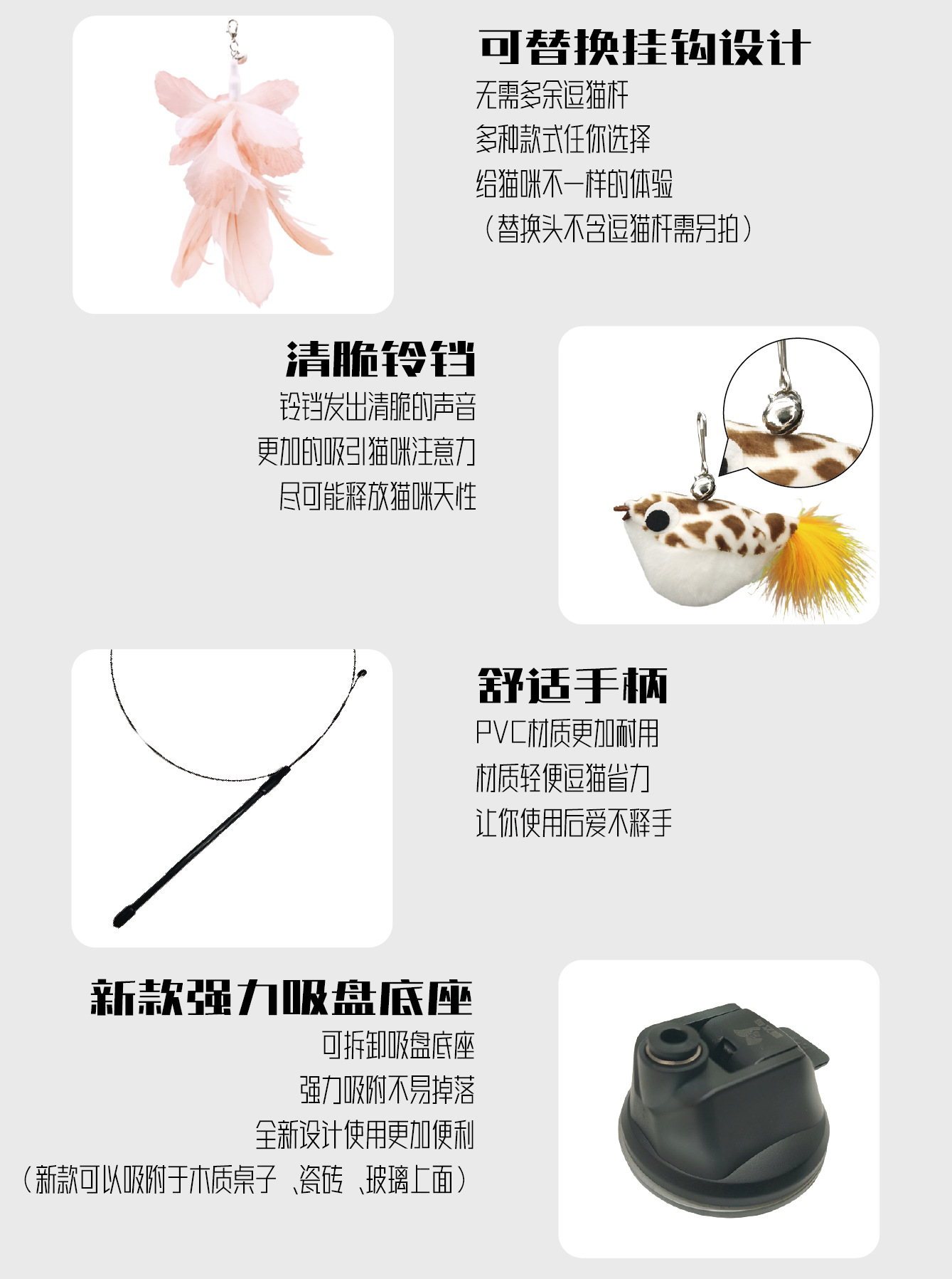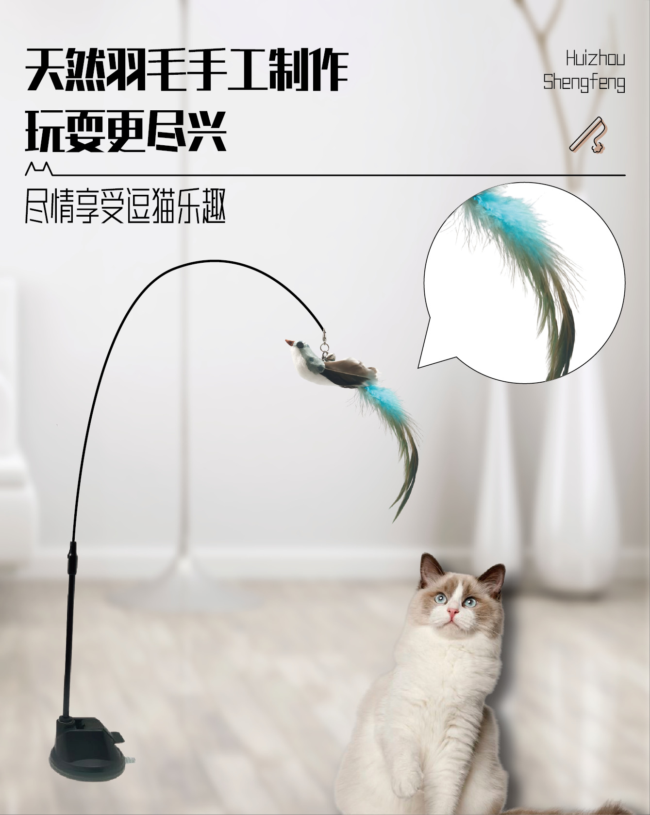 爱飞鸟跨境热卖专供升级款滴胶吸盘钢丝长杆羽毛逗猫棒自嗨猫玩具