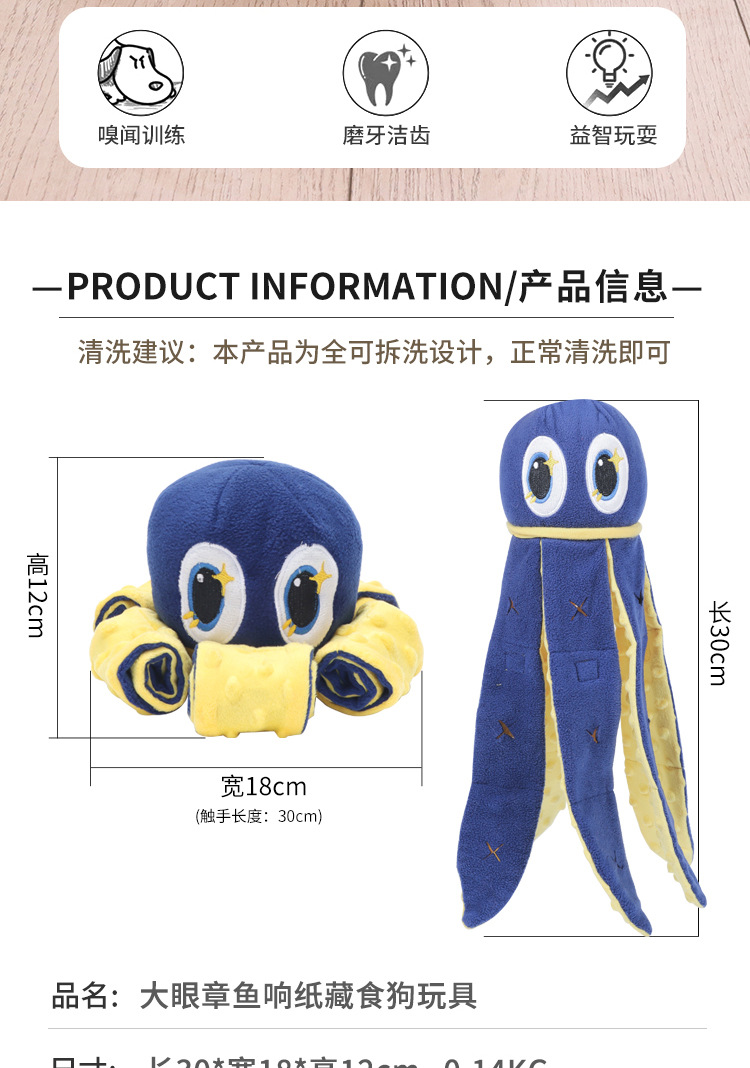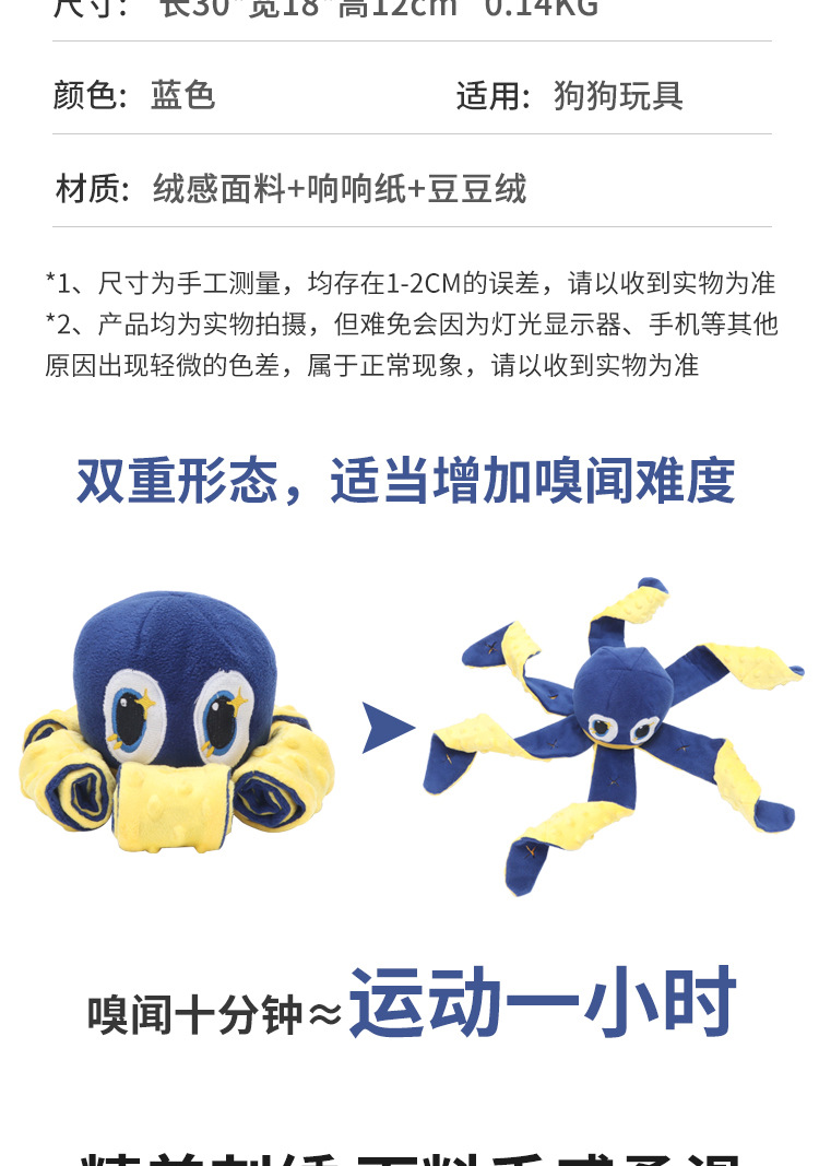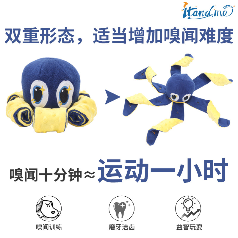我和它漏食狗玩具 亚马逊章鱼藏食益智嗅闻玩具磨牙嗅闻发声玩具