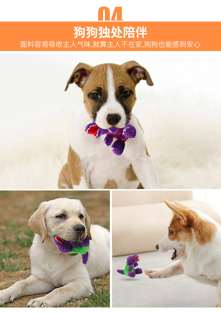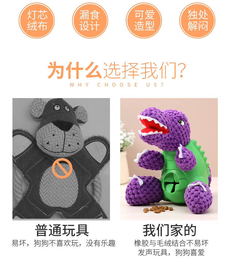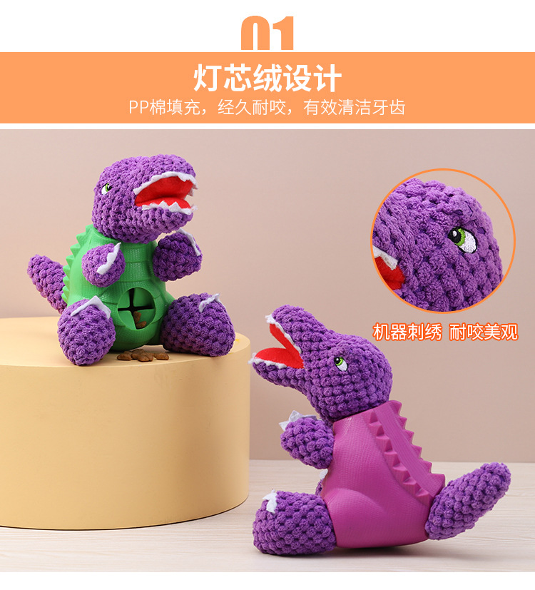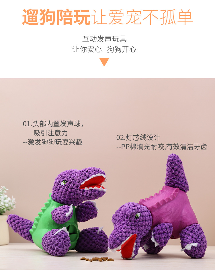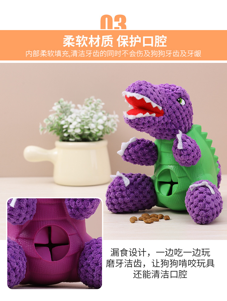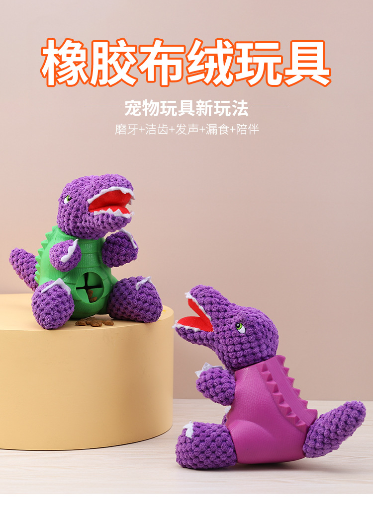 狗玩具毛绒耐咬宠物玩具发声磨牙漏食布绒恐龙亚马逊爆款橡胶玩具