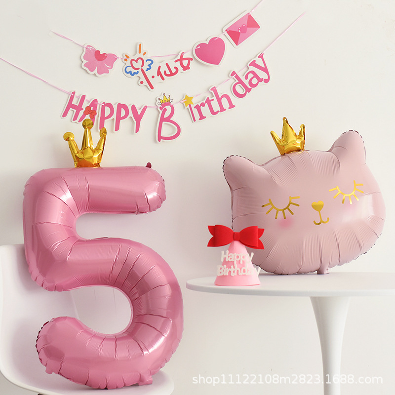 40寸粉色数字气球场景装饰生日布置女孩仪式感儿童派对拍照道具