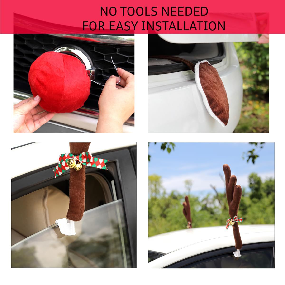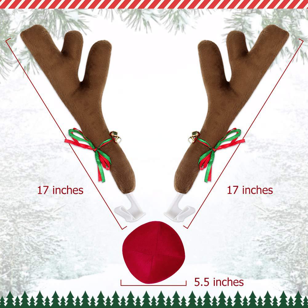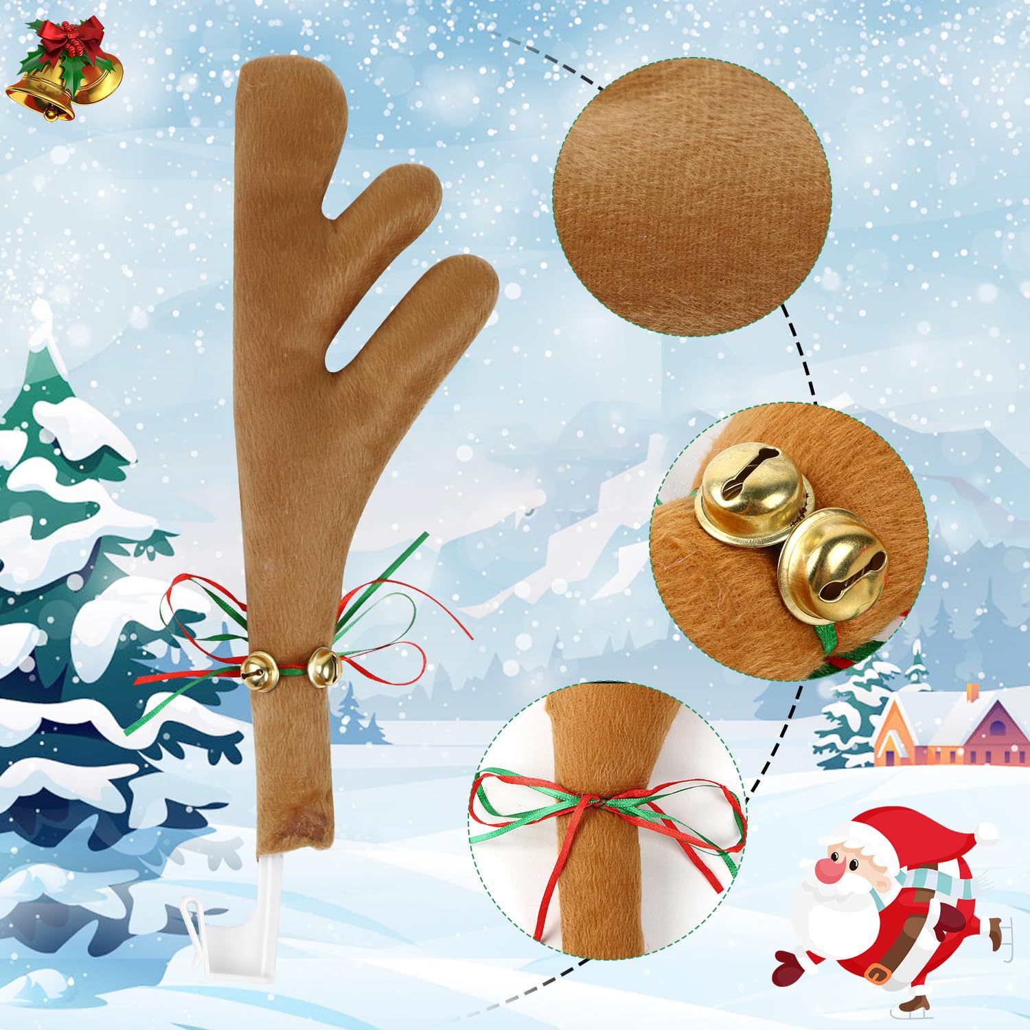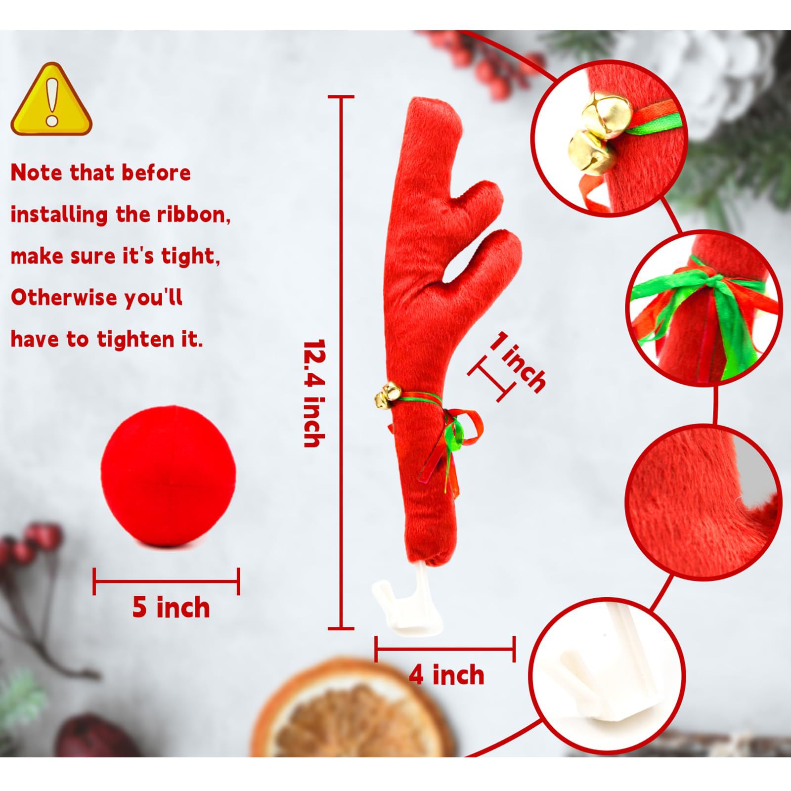 圣诞节汽车鹿角短毛绒 深棕卡其色大红色鹿角 节日发光铃铛装饰品