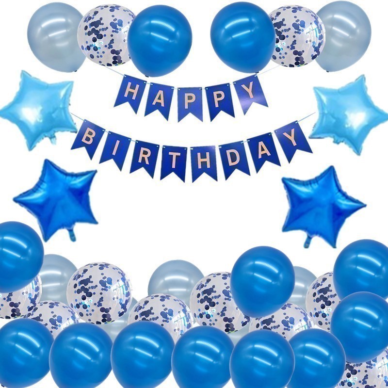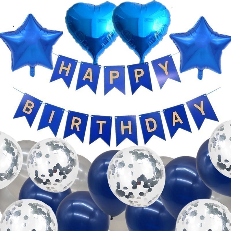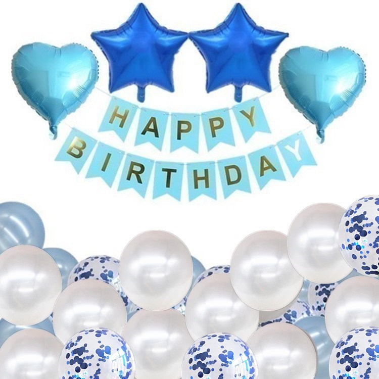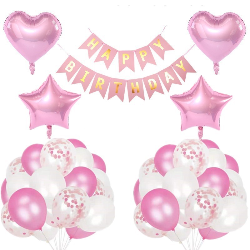 亚马逊跨境玫瑰金铝膜珠光气球生日横幅组合套装派对装饰39件套