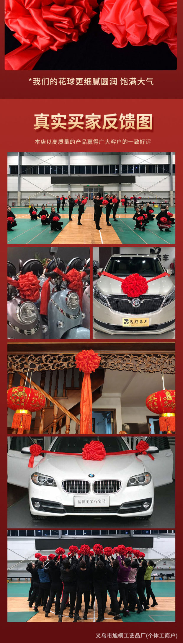 批发大红花球汽车大红花表彰开业剪彩绸缎大红花乔迁结婚红绣球