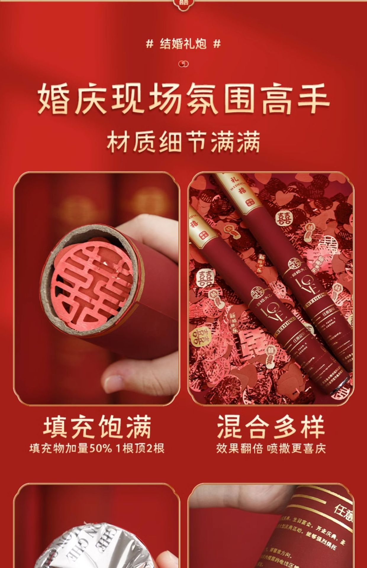 结婚礼炮手持礼筒婚礼小礼花筒炮手拧式手抛彩带羽毛花瓣婚庆用品