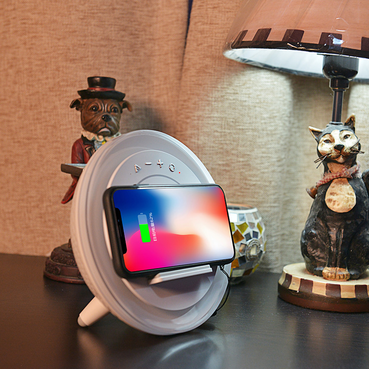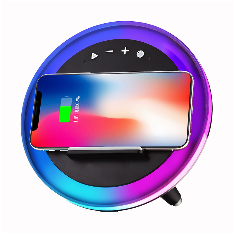 2023年新款跨境插电蓝牙音响七彩氛围手机无线充LED灯源头