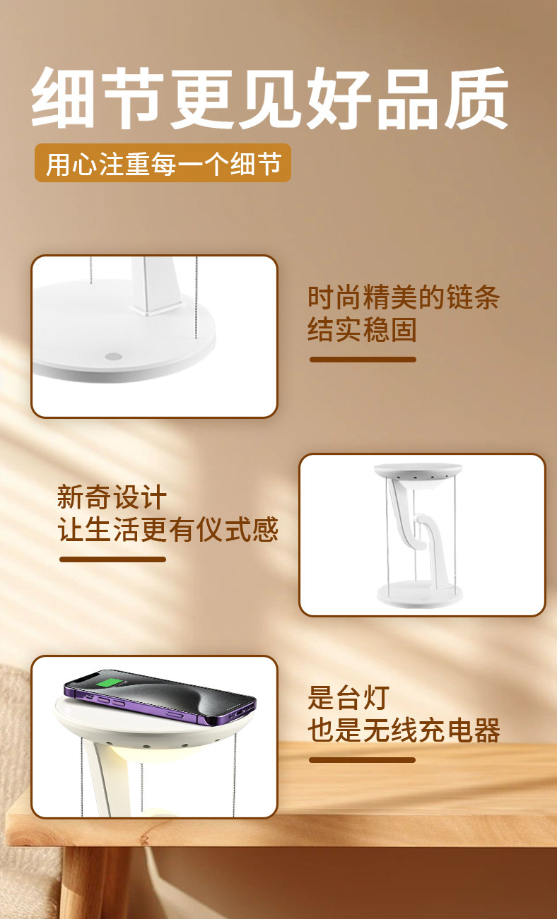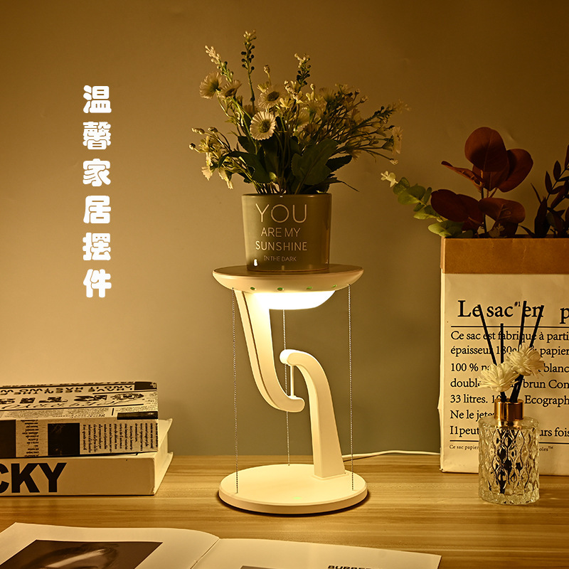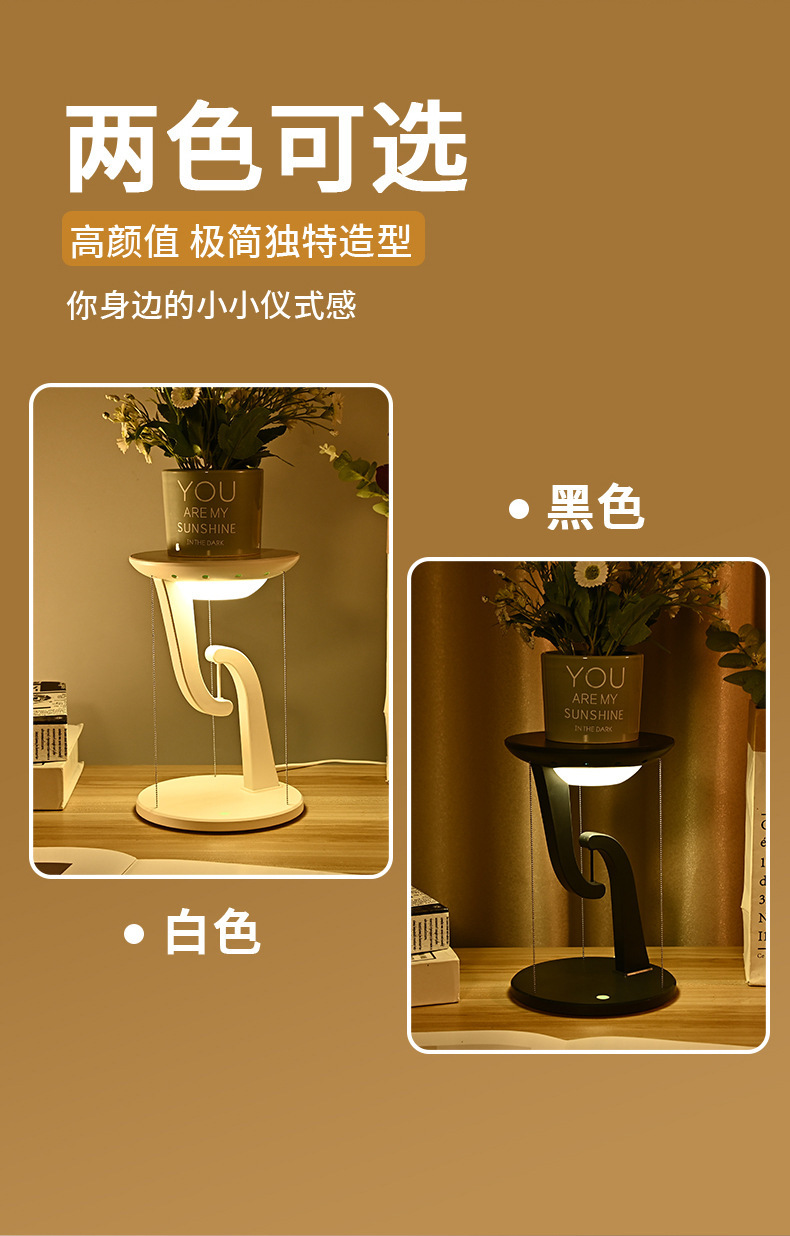 跨境创意15W手机无线充悬浮台灯居家氛围摆件礼品插电小夜灯批发