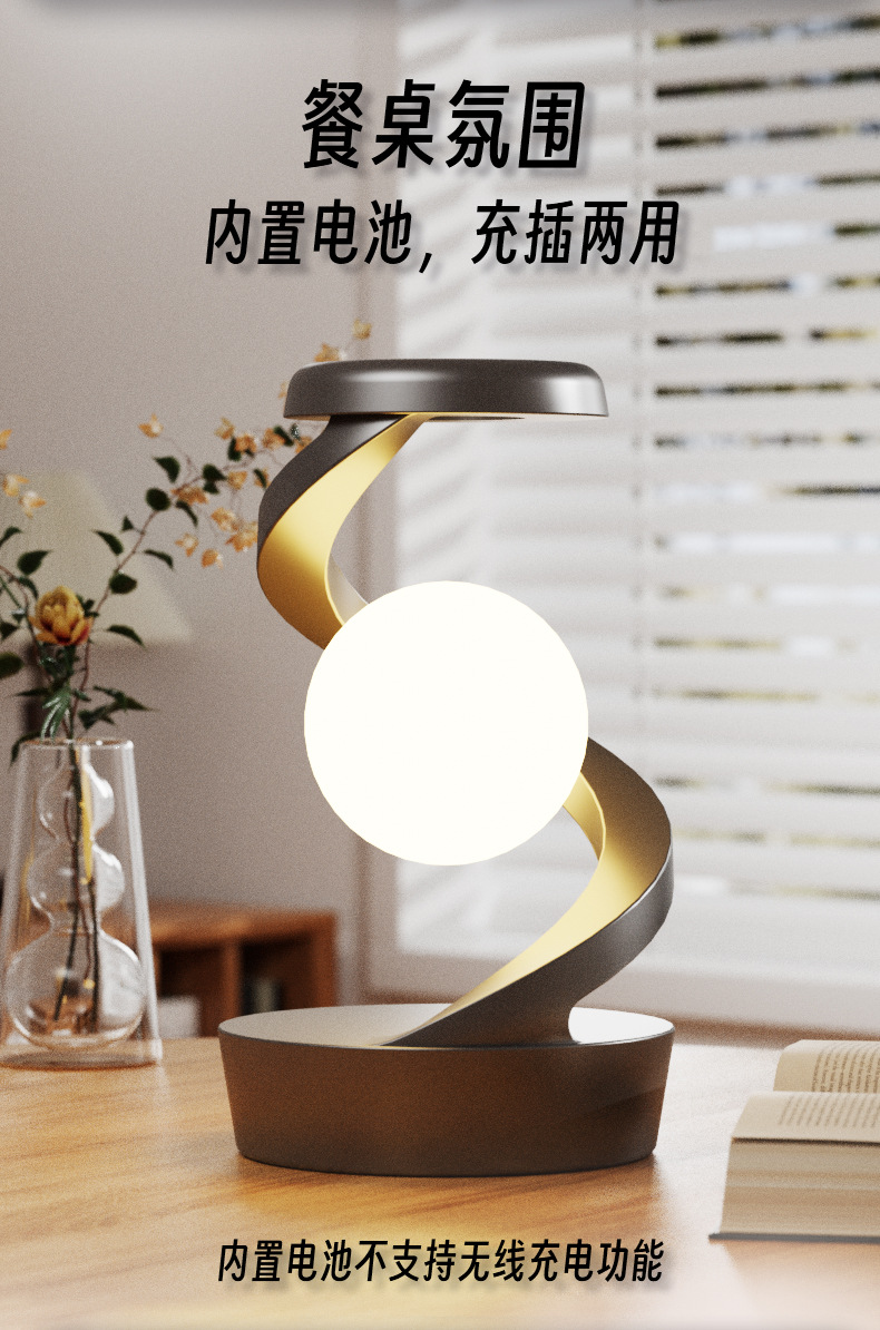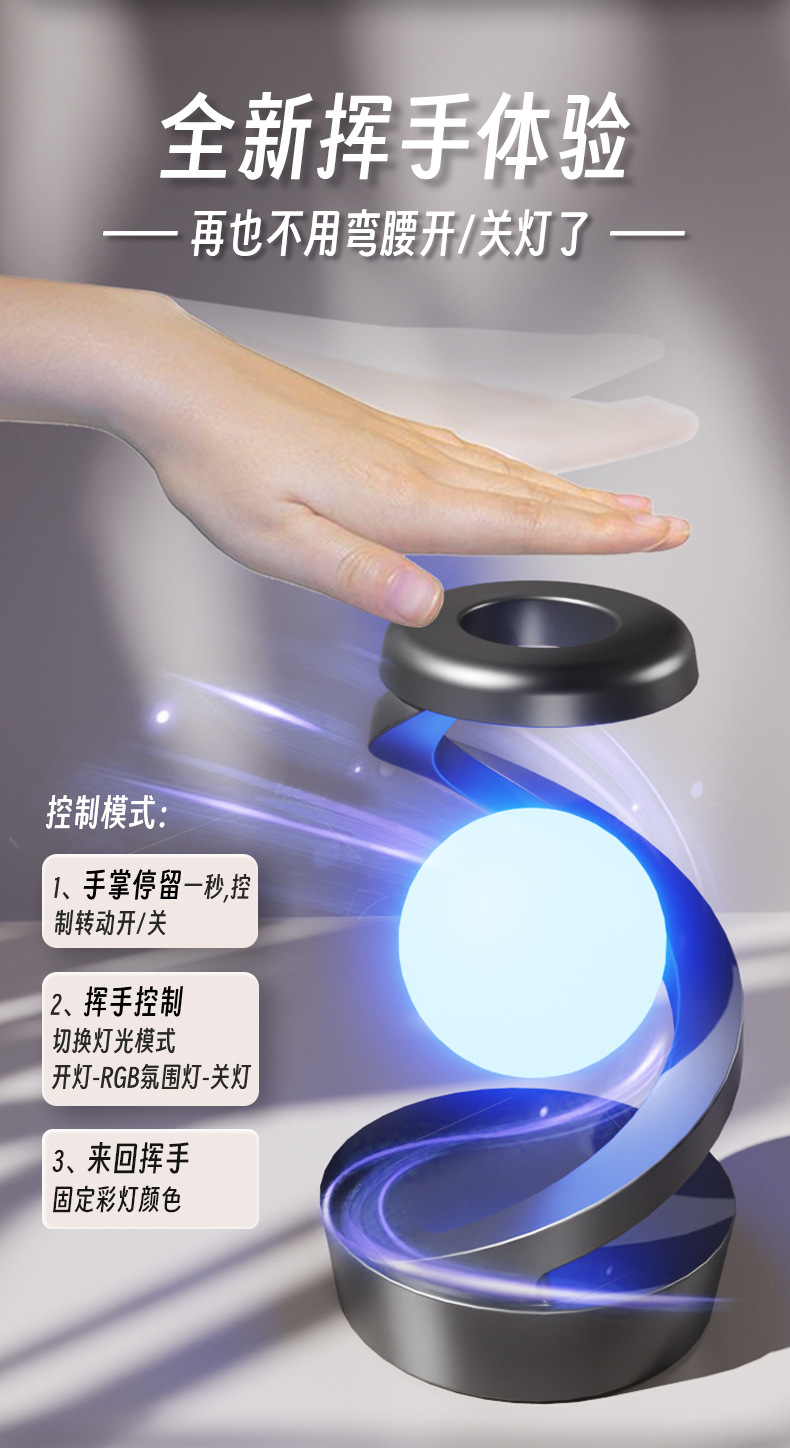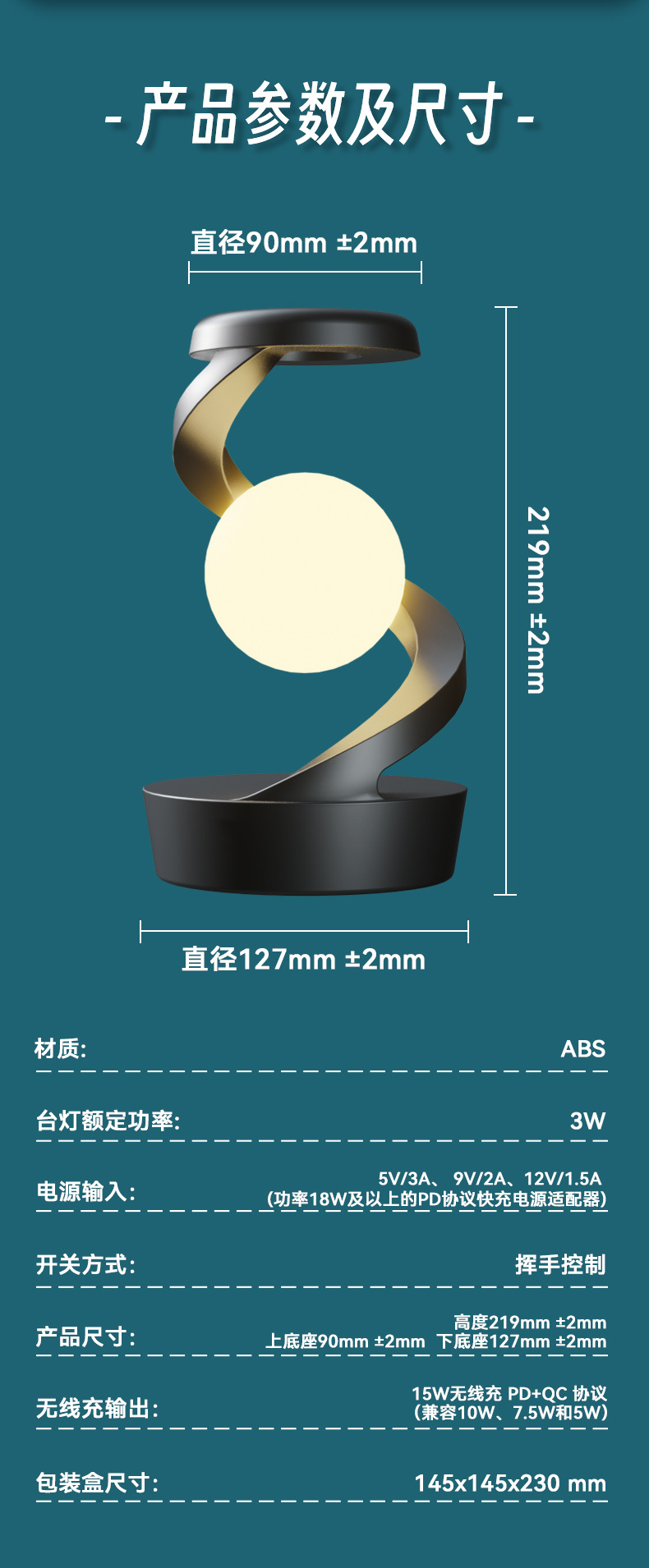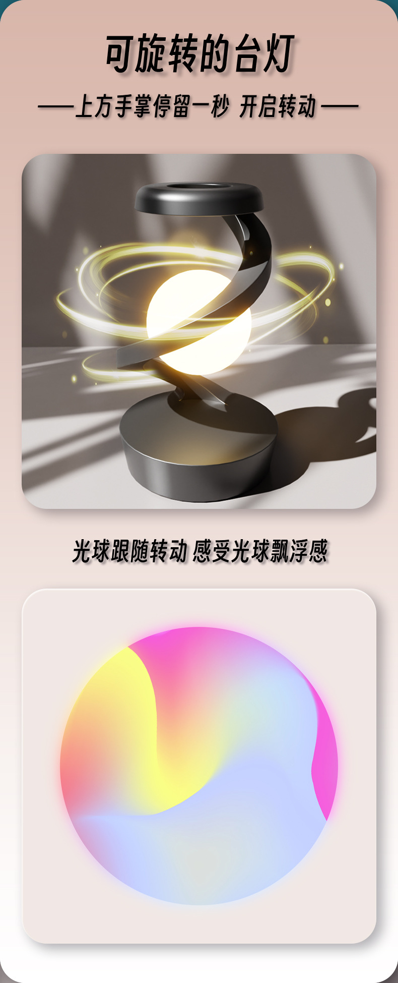 跨境新款10W无线充夜灯感应旋转RGB七彩氛围视觉悬浮充电台灯