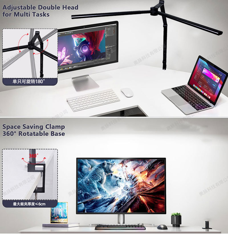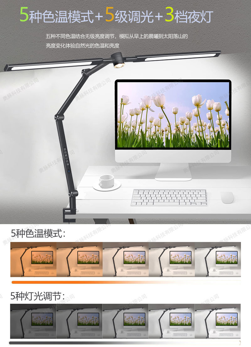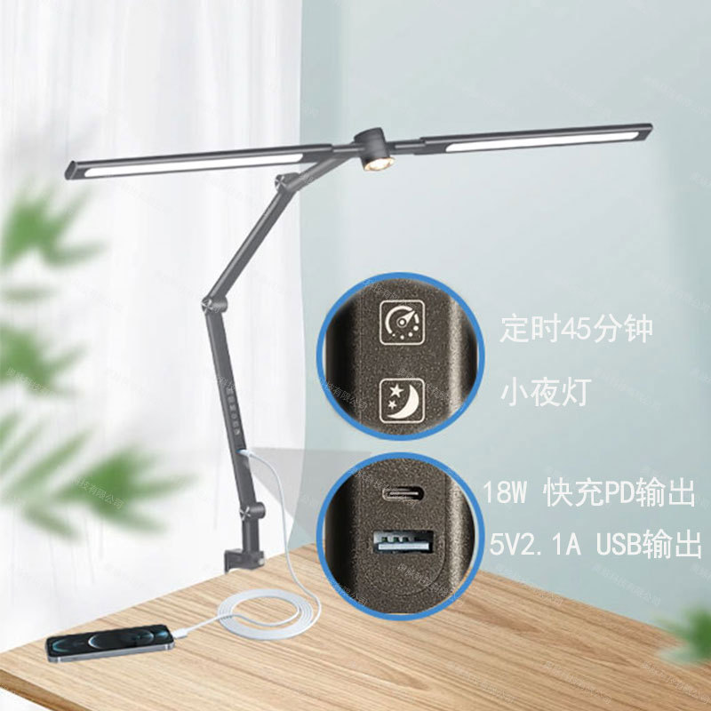 2024跨境新款多功能屏幕夹子灯多轴旋转折叠护眼阅读台灯
