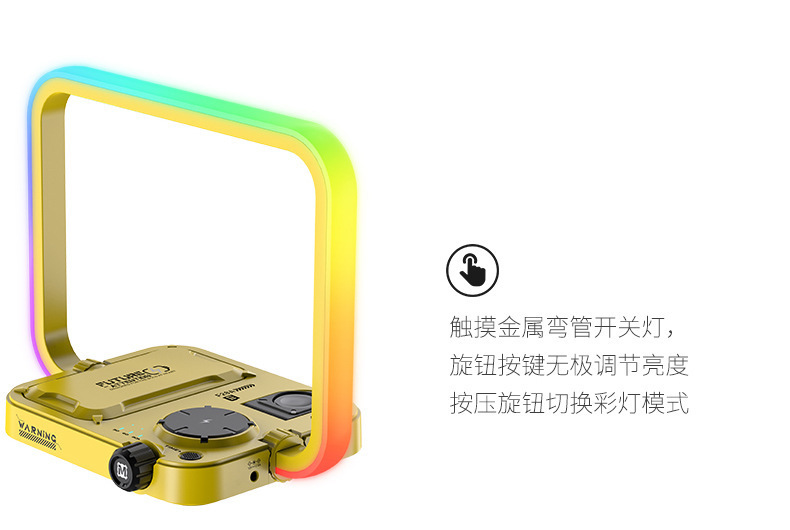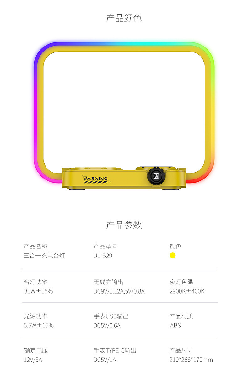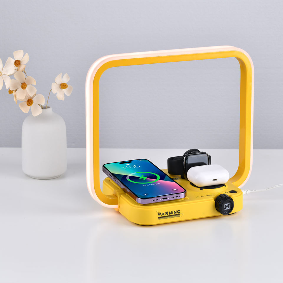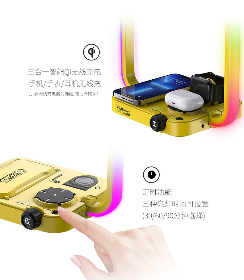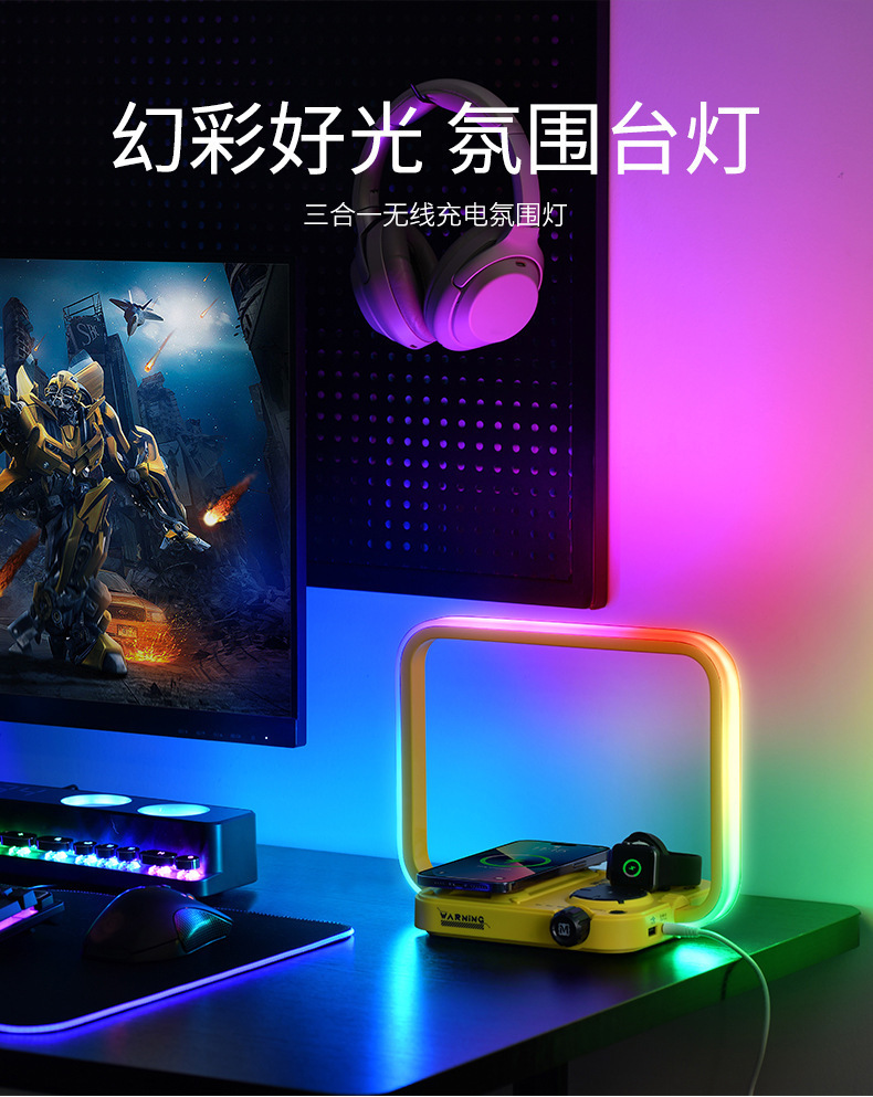 跨境新款桌面七彩氛围小夜灯三合一手机耳机手表无线充电台灯