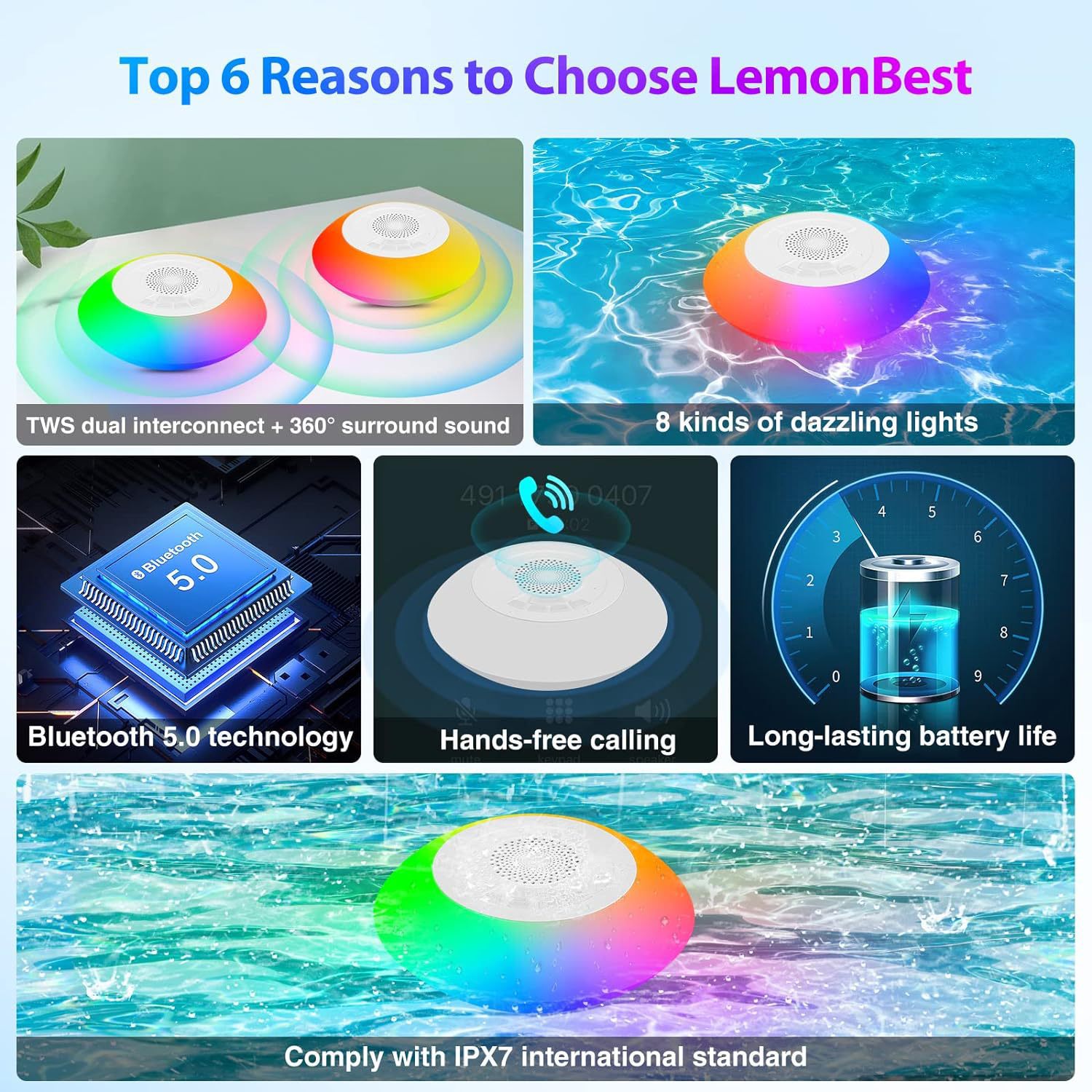亚马逊泳池防水漂浮蓝牙音响灯七彩氛围便捷充电内置电池夜灯批发
