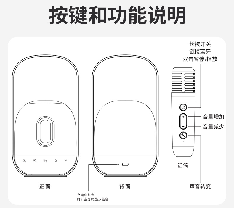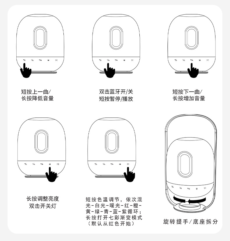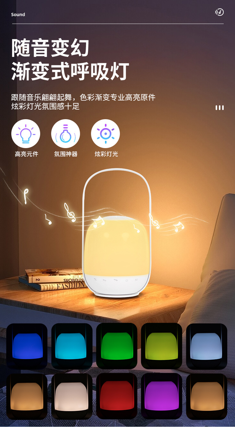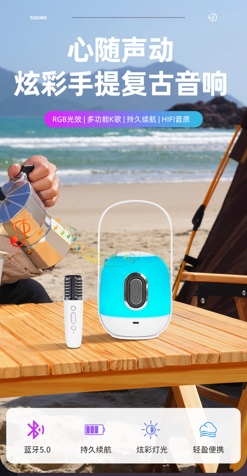 跨境户外K歌一体七彩氛围蓝牙音响灯室内可调节亮度充电手提夜灯