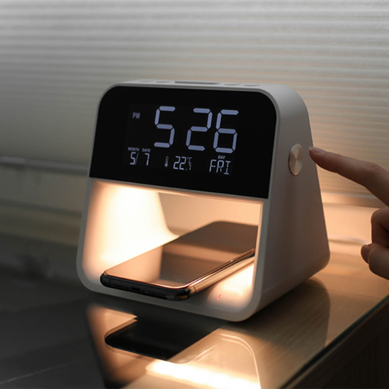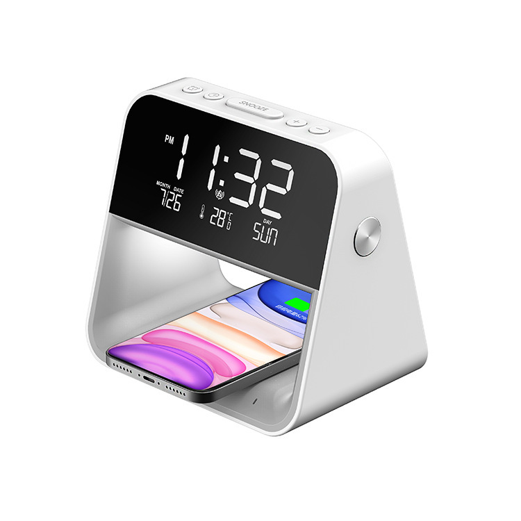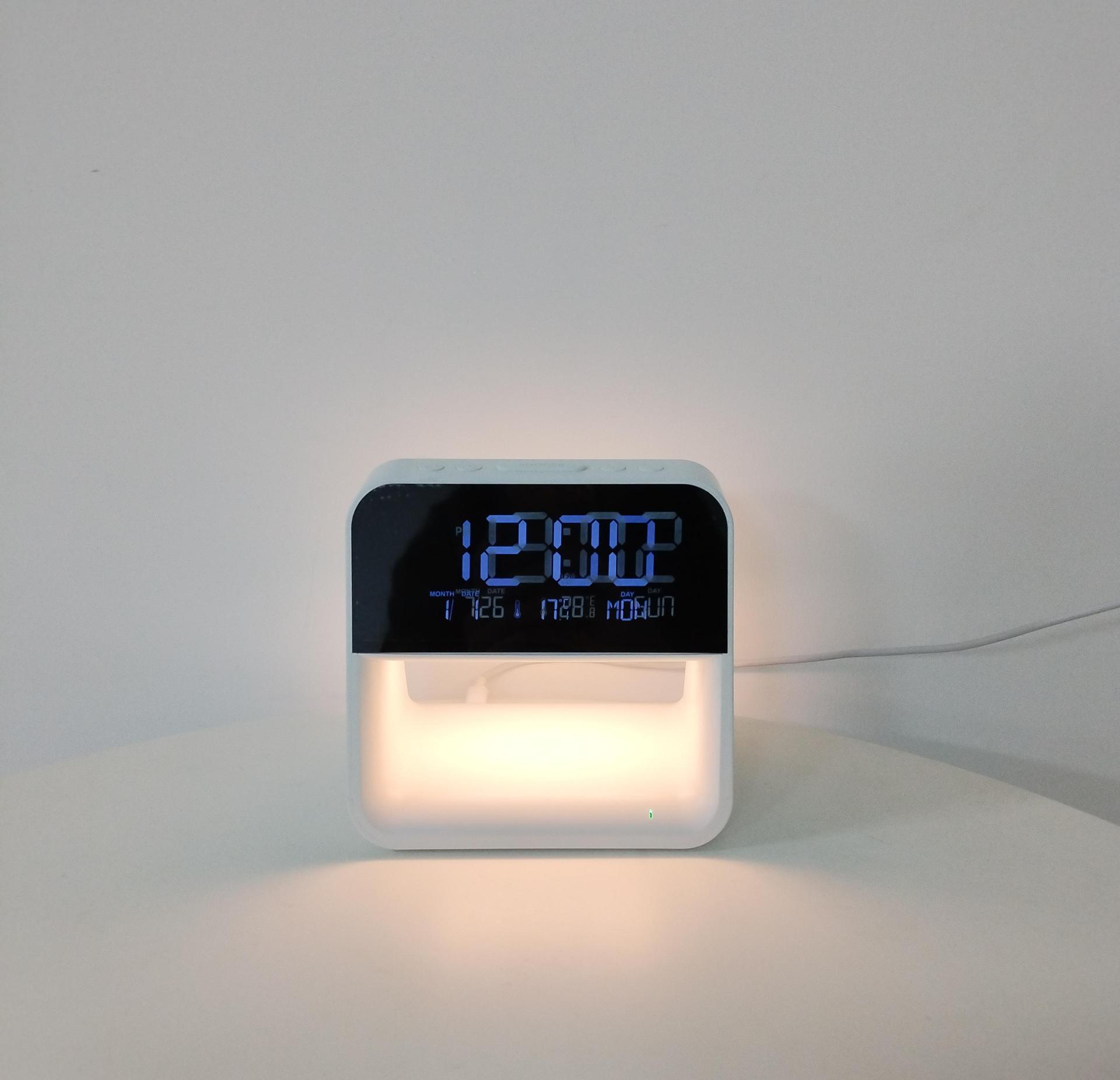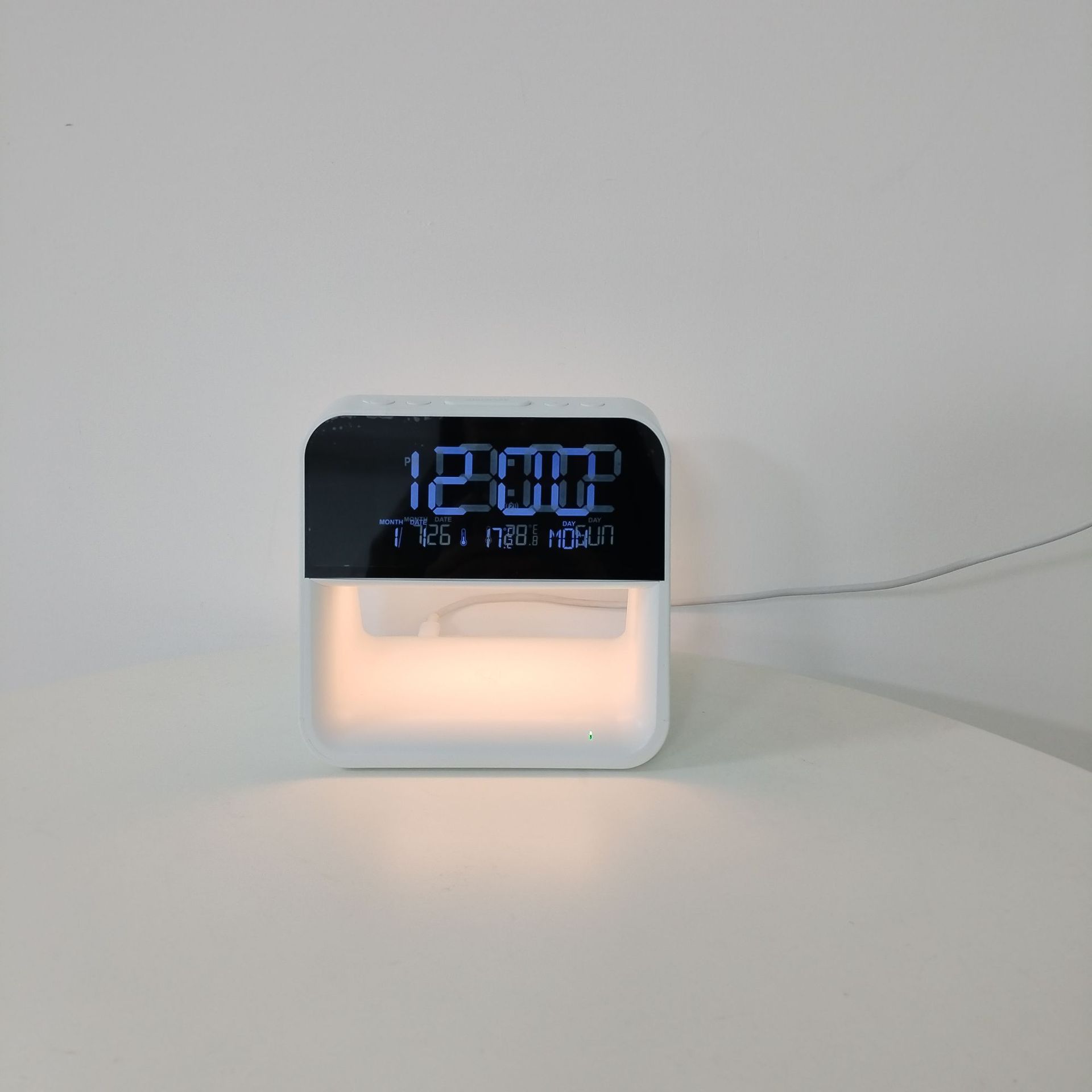 亚马逊商务大屏时钟闹钟床头灯15W手机无线充电可调节小夜灯批发
