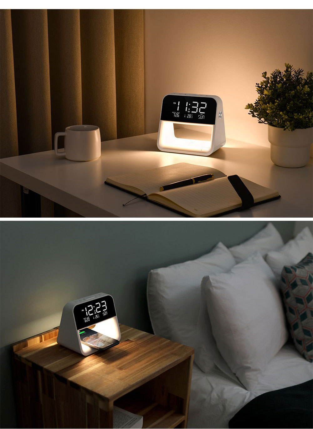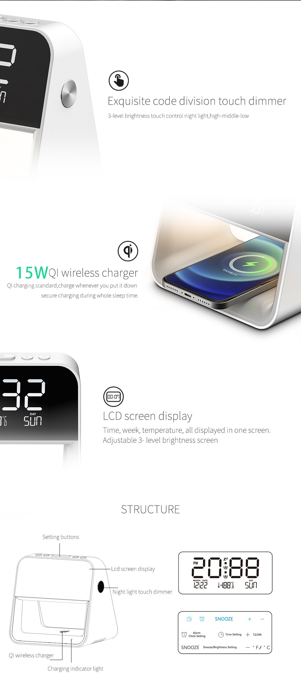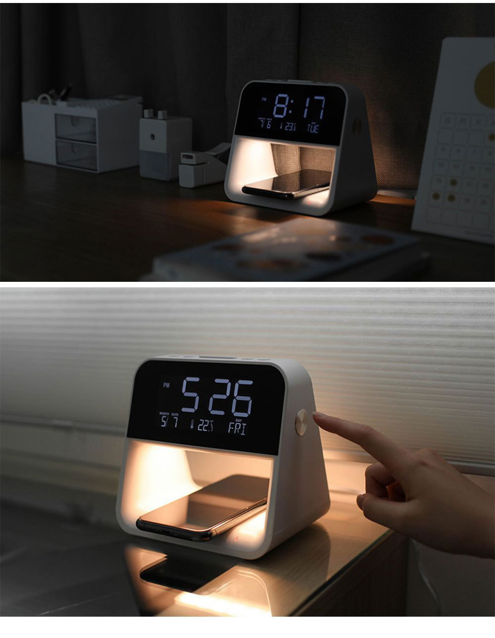 亚马逊商务大屏时钟闹钟床头灯15W手机无线充电可调节小夜灯批发