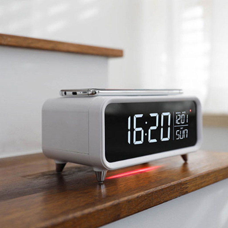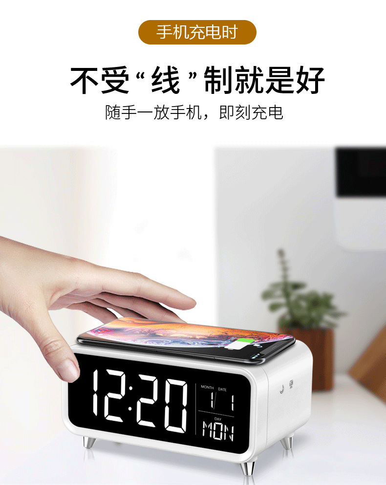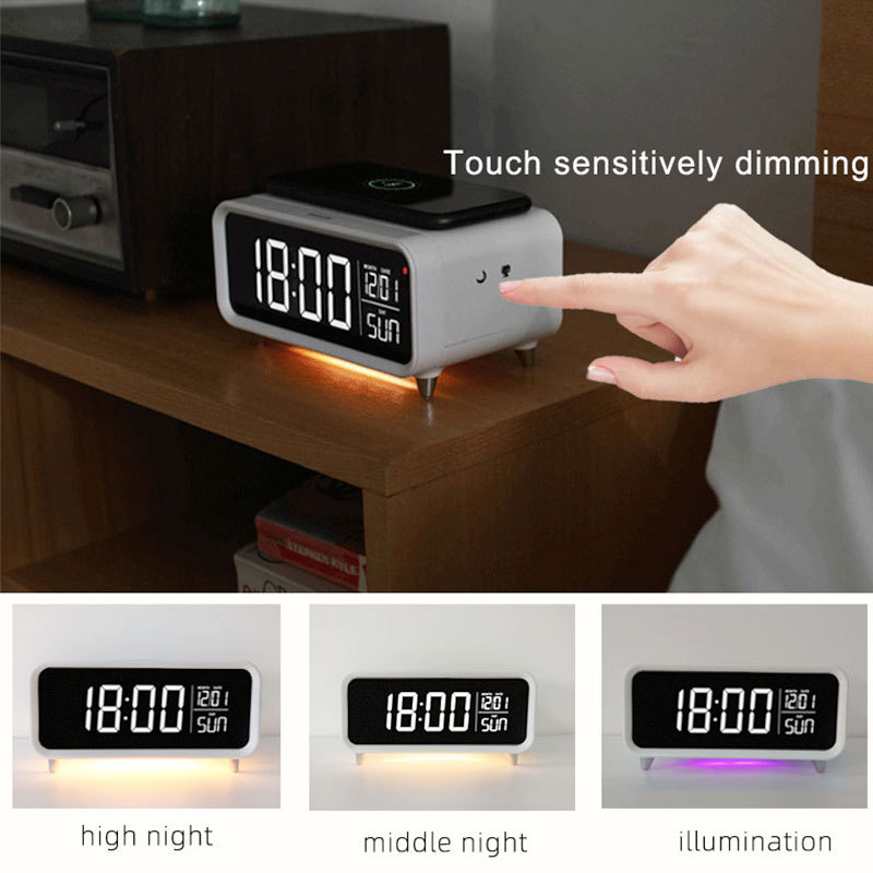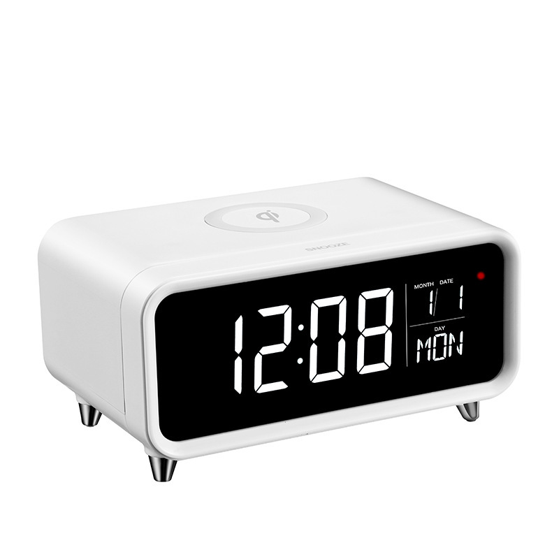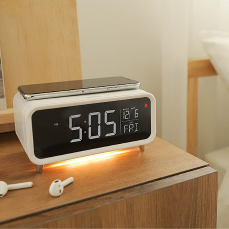 源头QI无线充床头夜灯居家礼品便捷LCD万年历时钟插电台灯