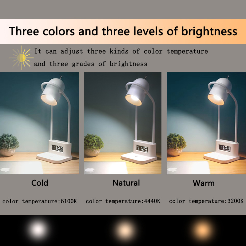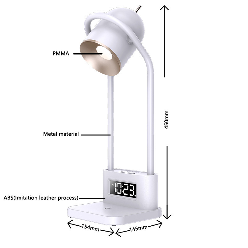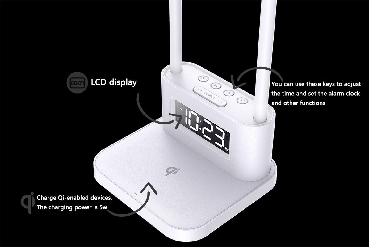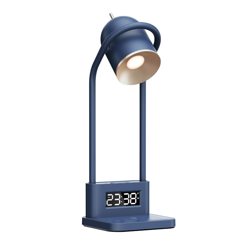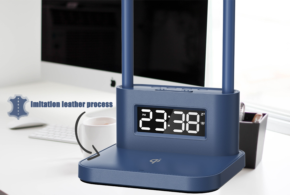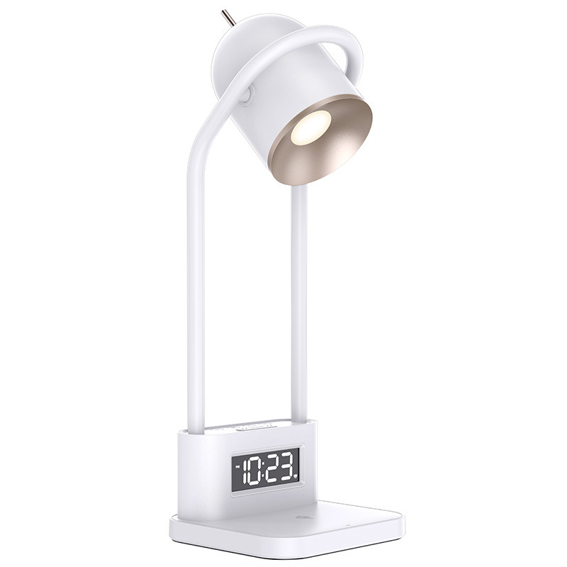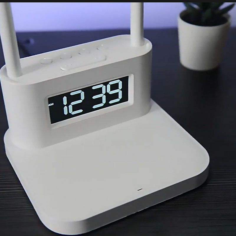 2023亚马逊新款显示屏时钟金属台灯卧室无线充电阅读学习小夜灯