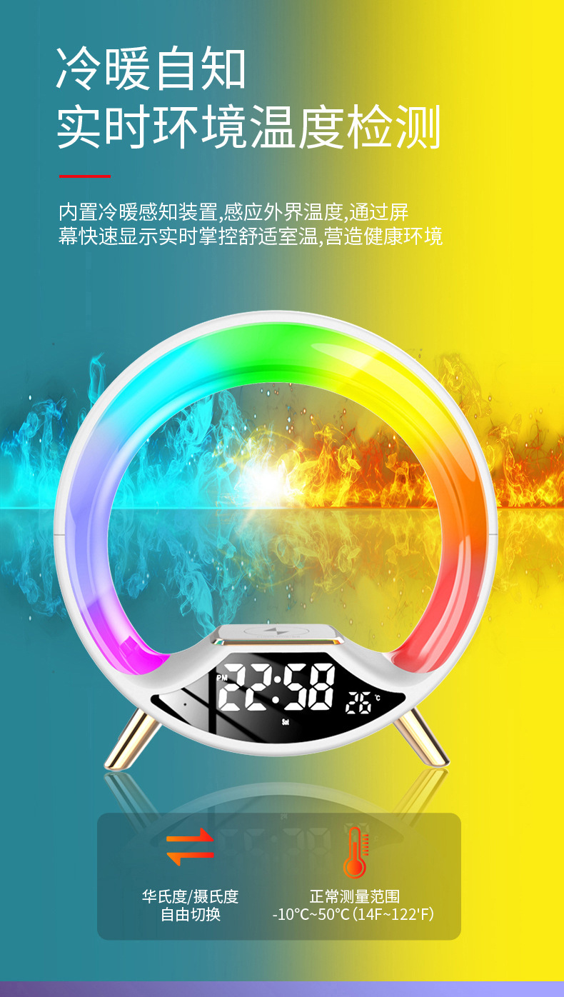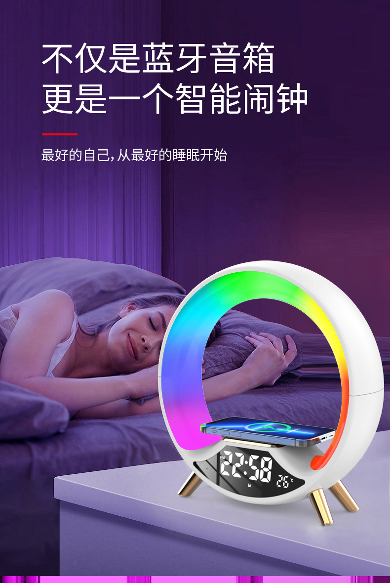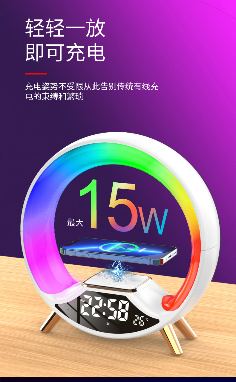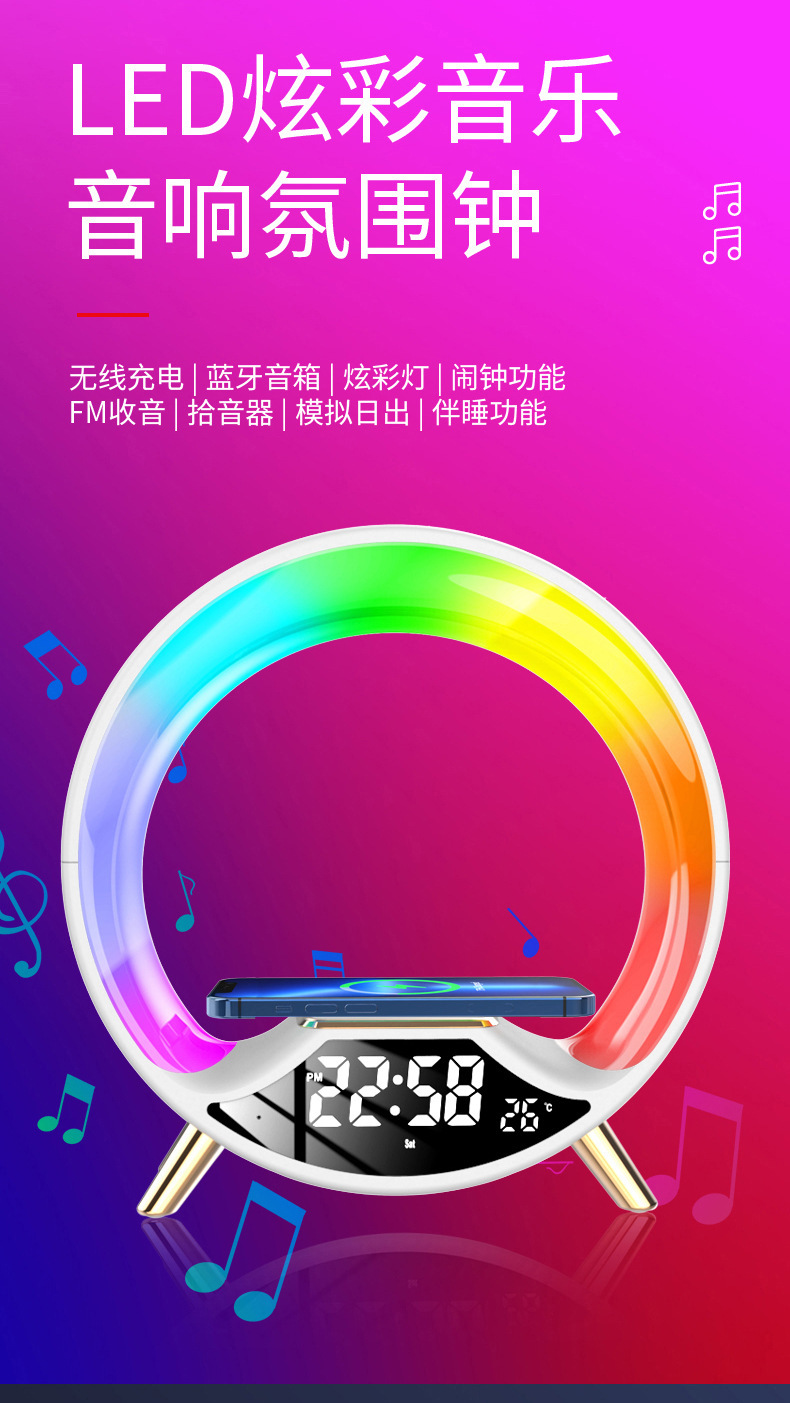 跨境三合一无线充多功能炫彩小夜灯智能时钟唤醒灯蓝牙音箱氛围灯