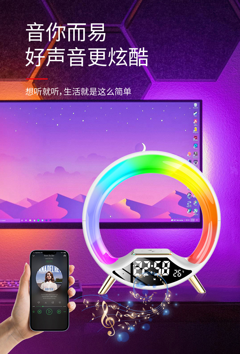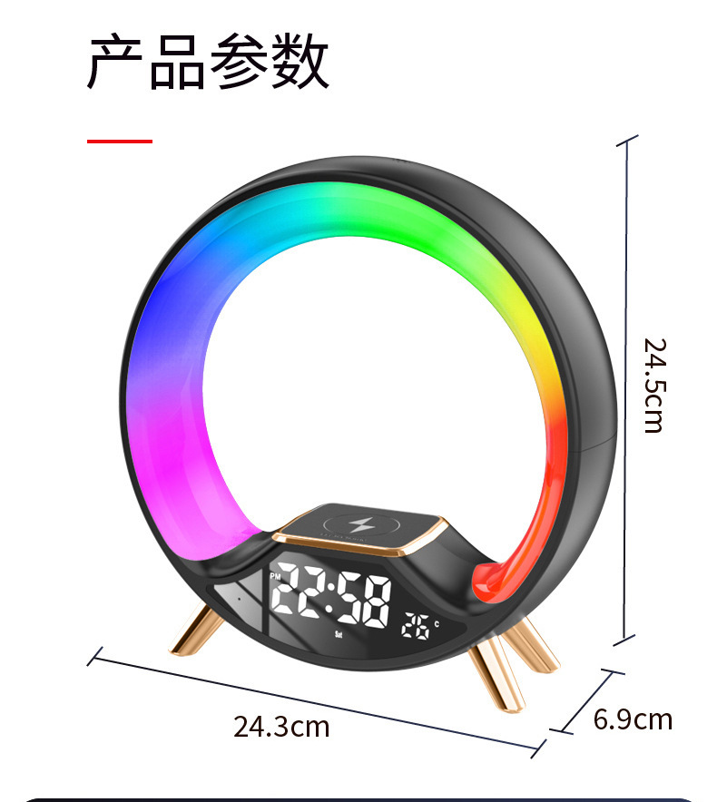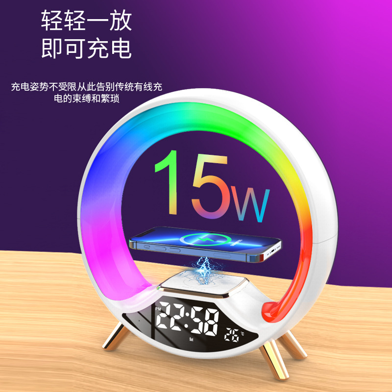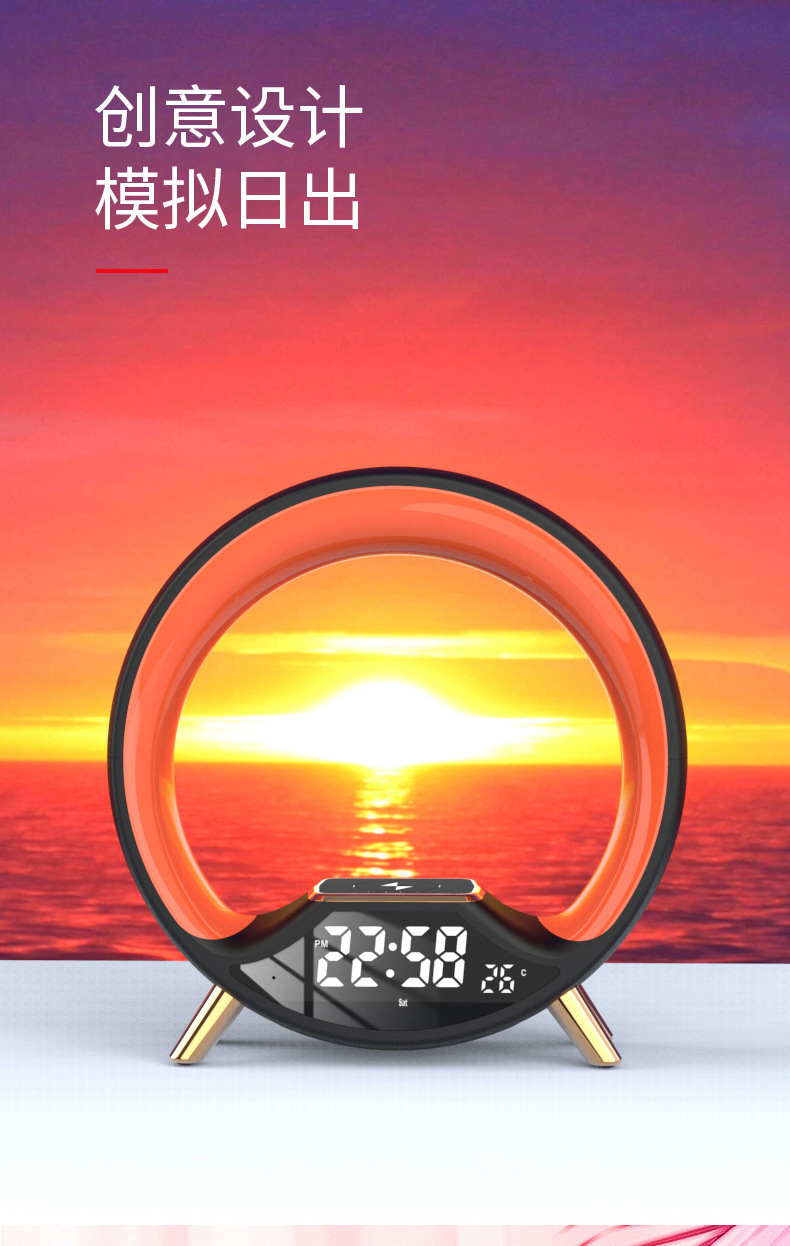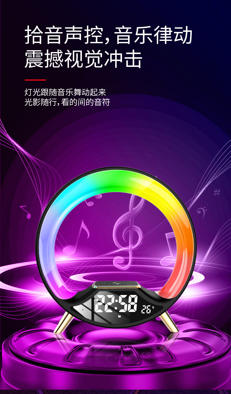 跨境三合一无线充多功能炫彩小夜灯智能时钟唤醒灯蓝牙音箱氛围灯