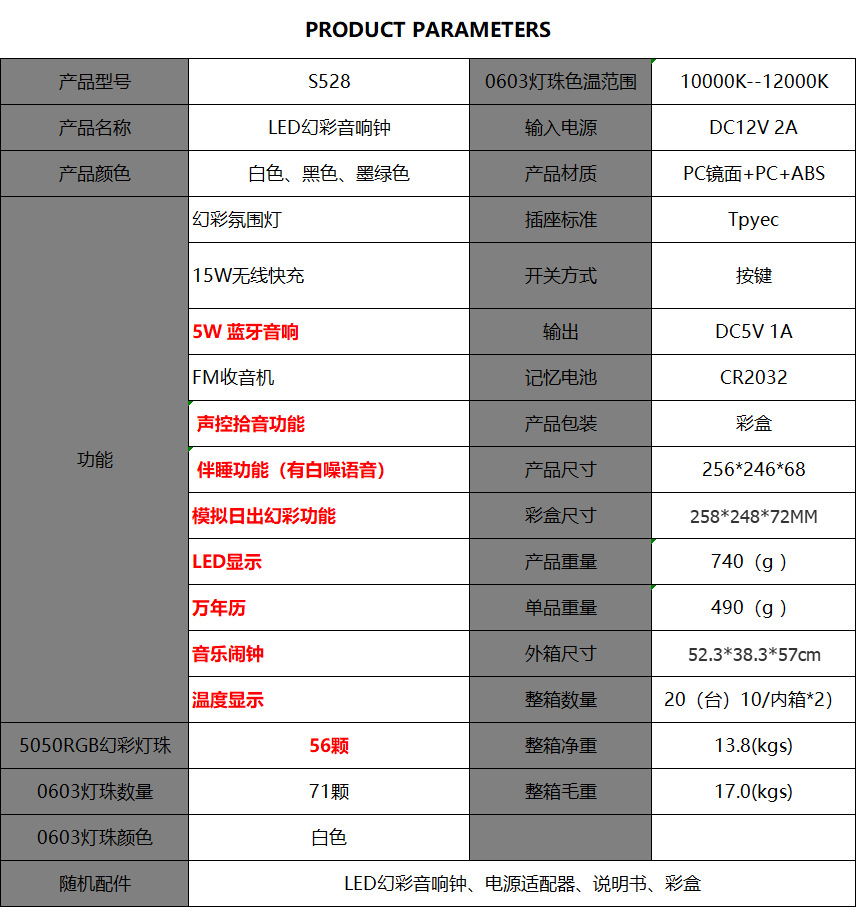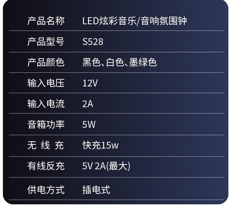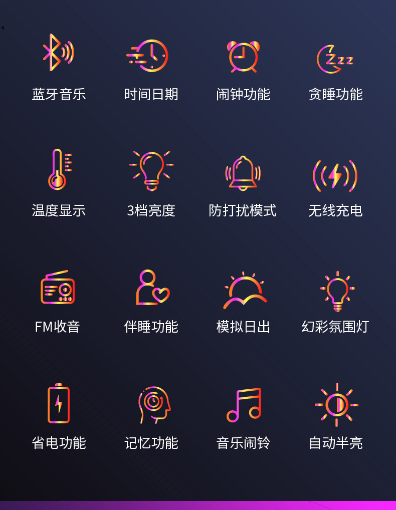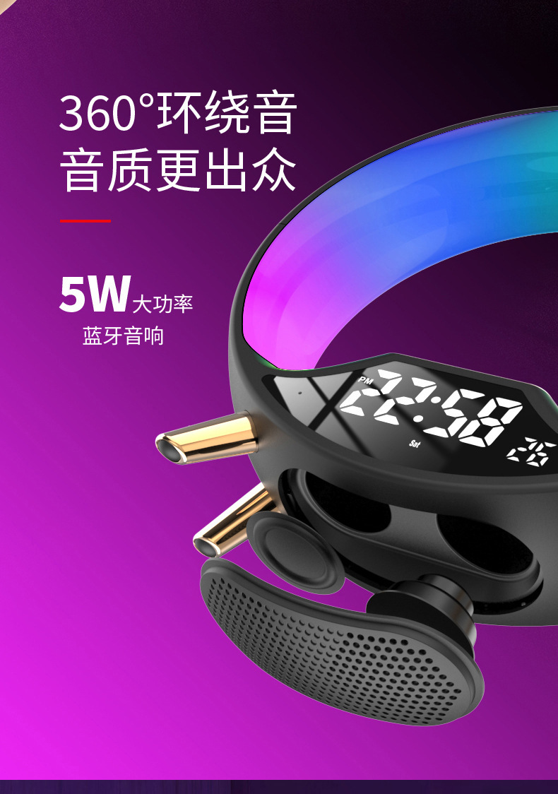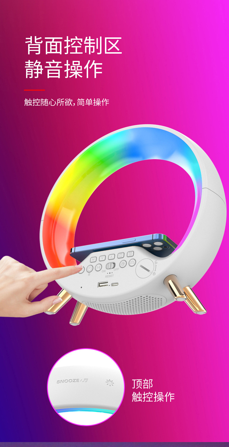 跨境三合一无线充多功能炫彩小夜灯智能时钟唤醒灯蓝牙音箱氛围灯