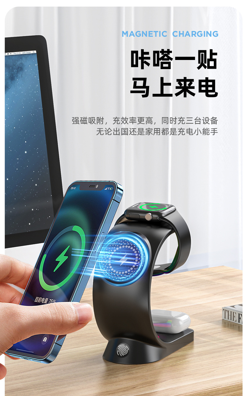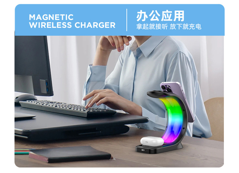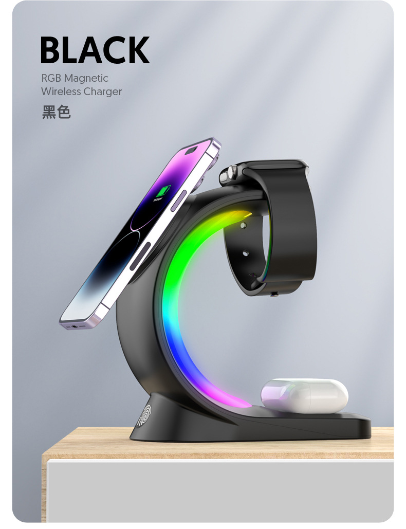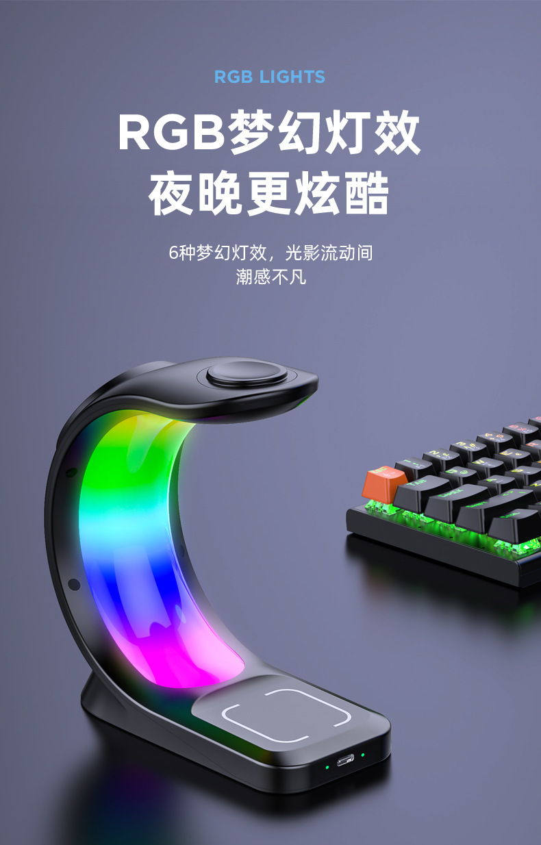 跨境三合一无线充多功能小夜灯RGB氛围灯桌面磁吸无线充支架摆件
