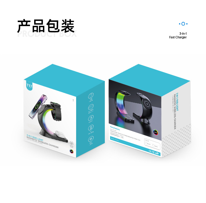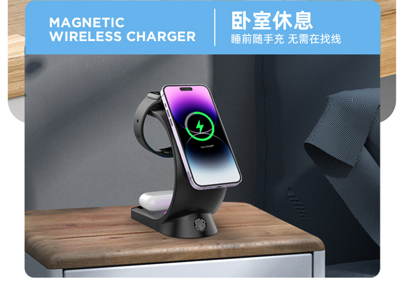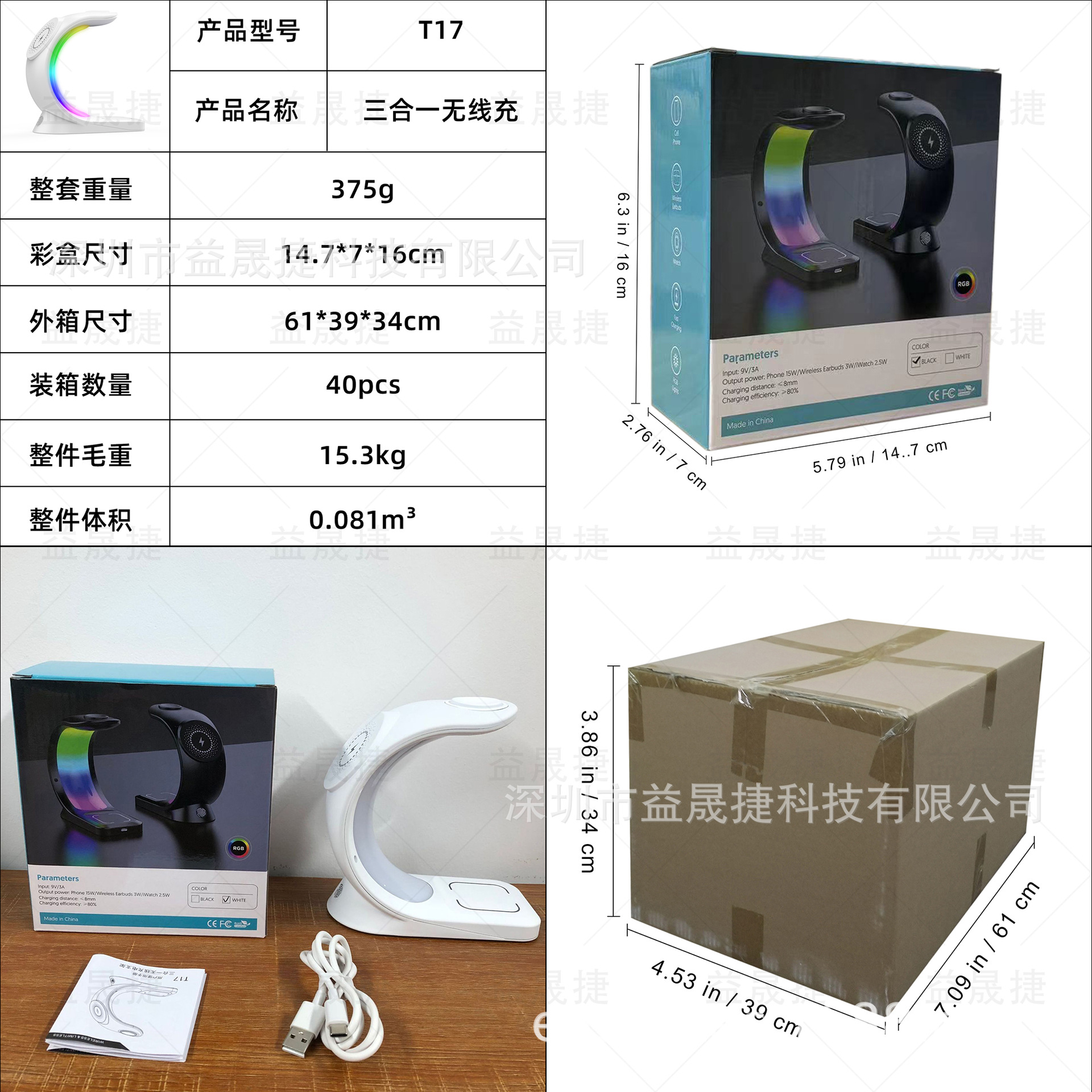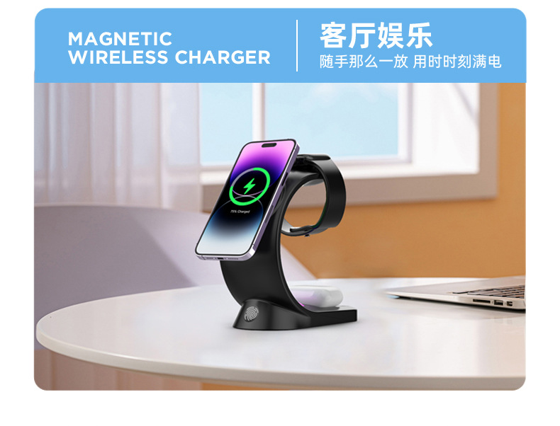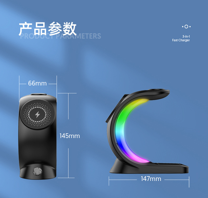 跨境三合一无线充多功能小夜灯RGB氛围灯桌面磁吸无线充支架摆件